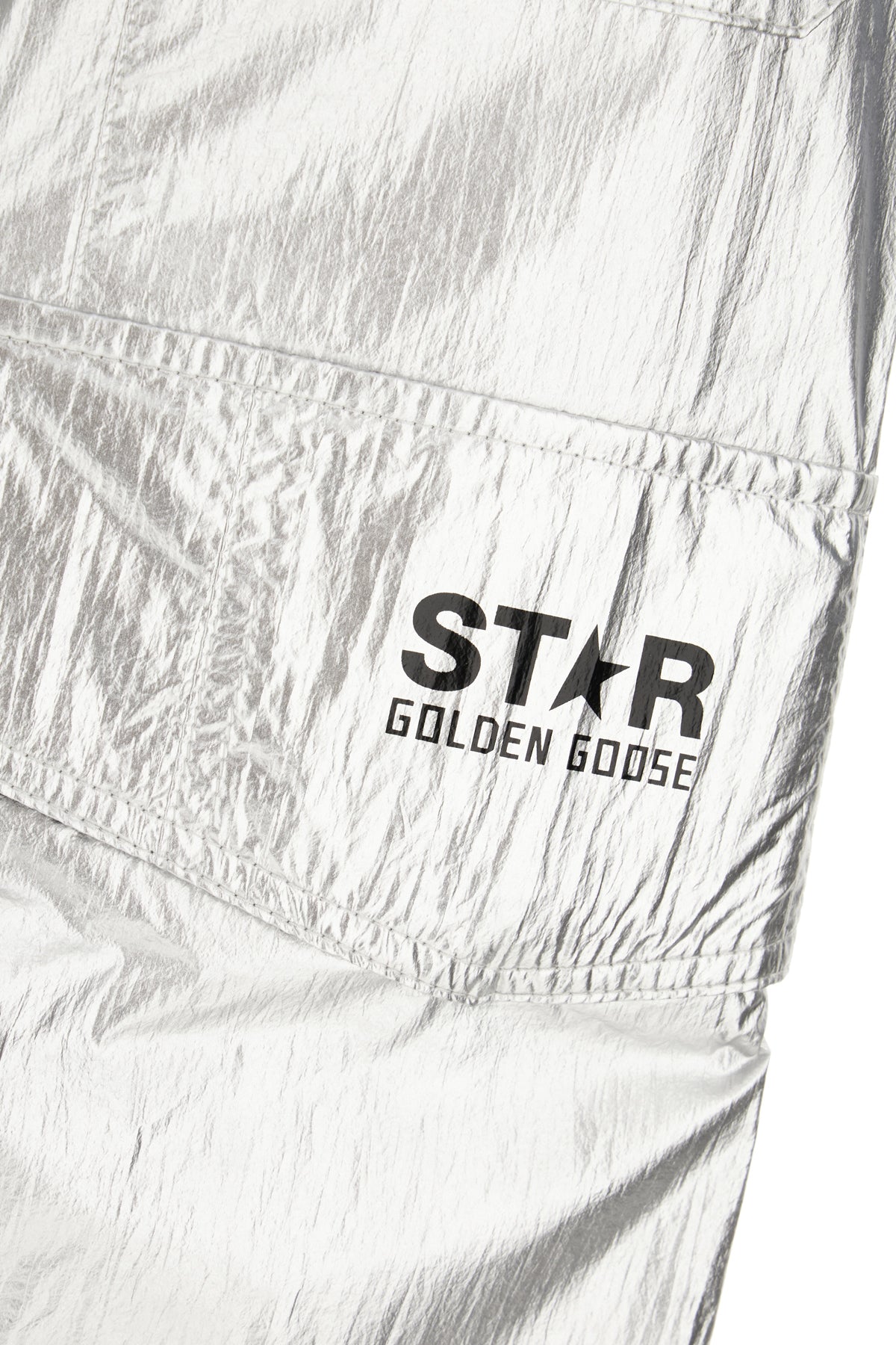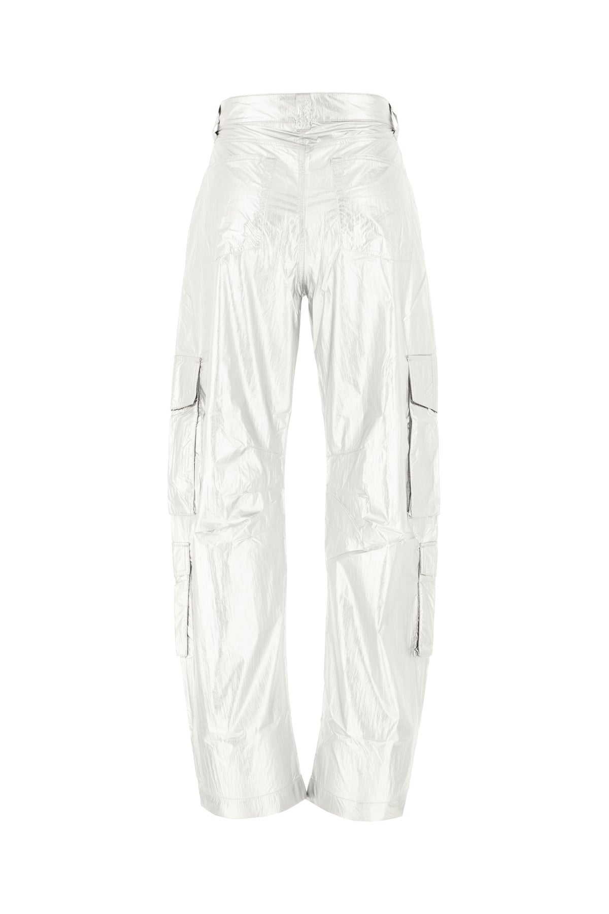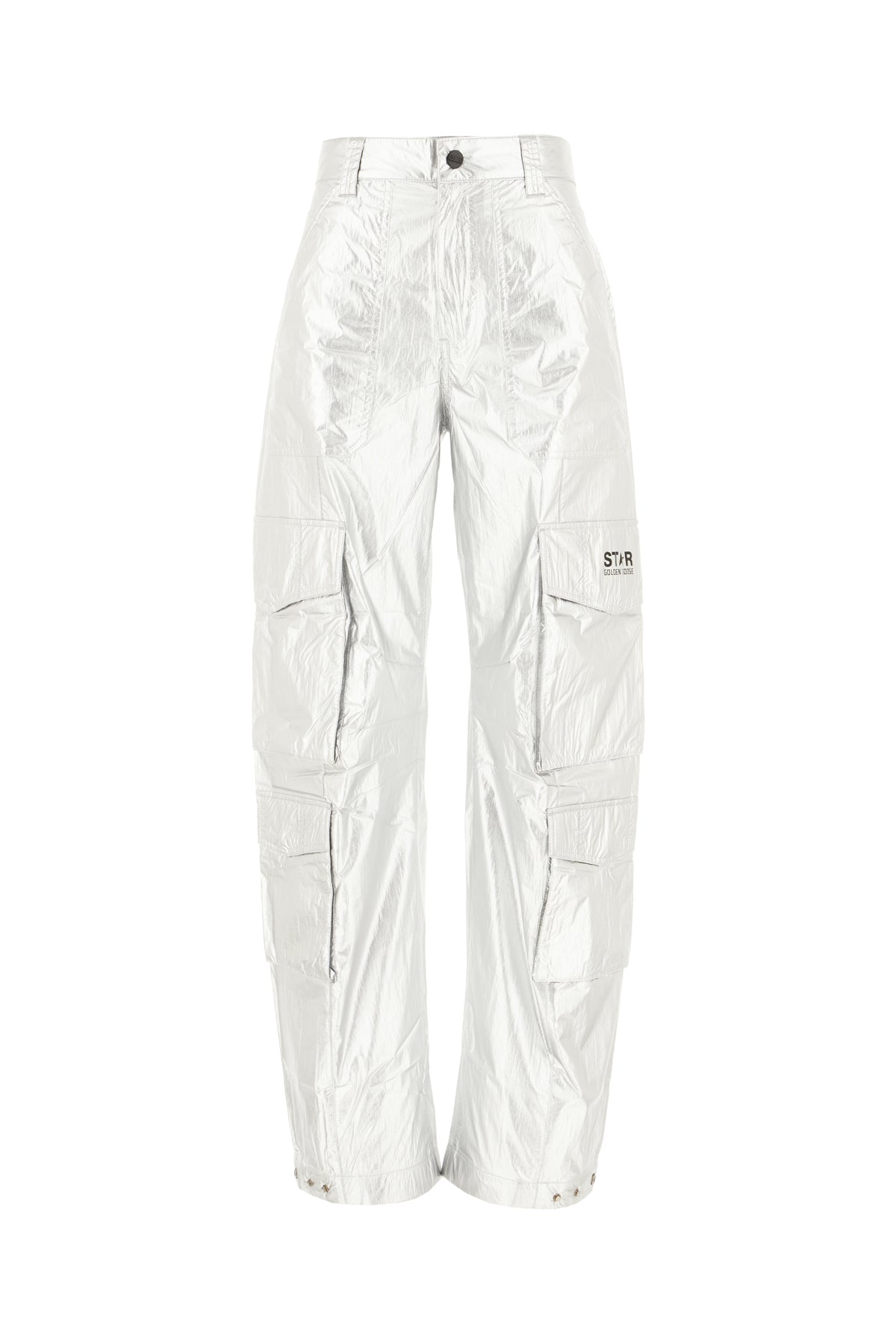 Cargo pants realized in nylon characterized by contrasting logoed print at the front.