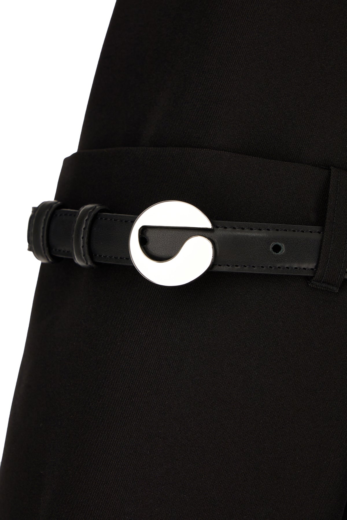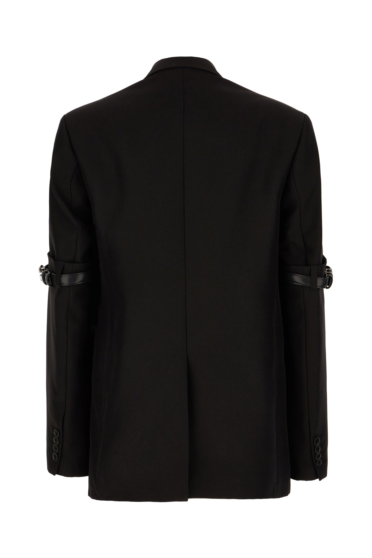 Blazer realized in polyester enriched by tonal leather on the sleeves.
