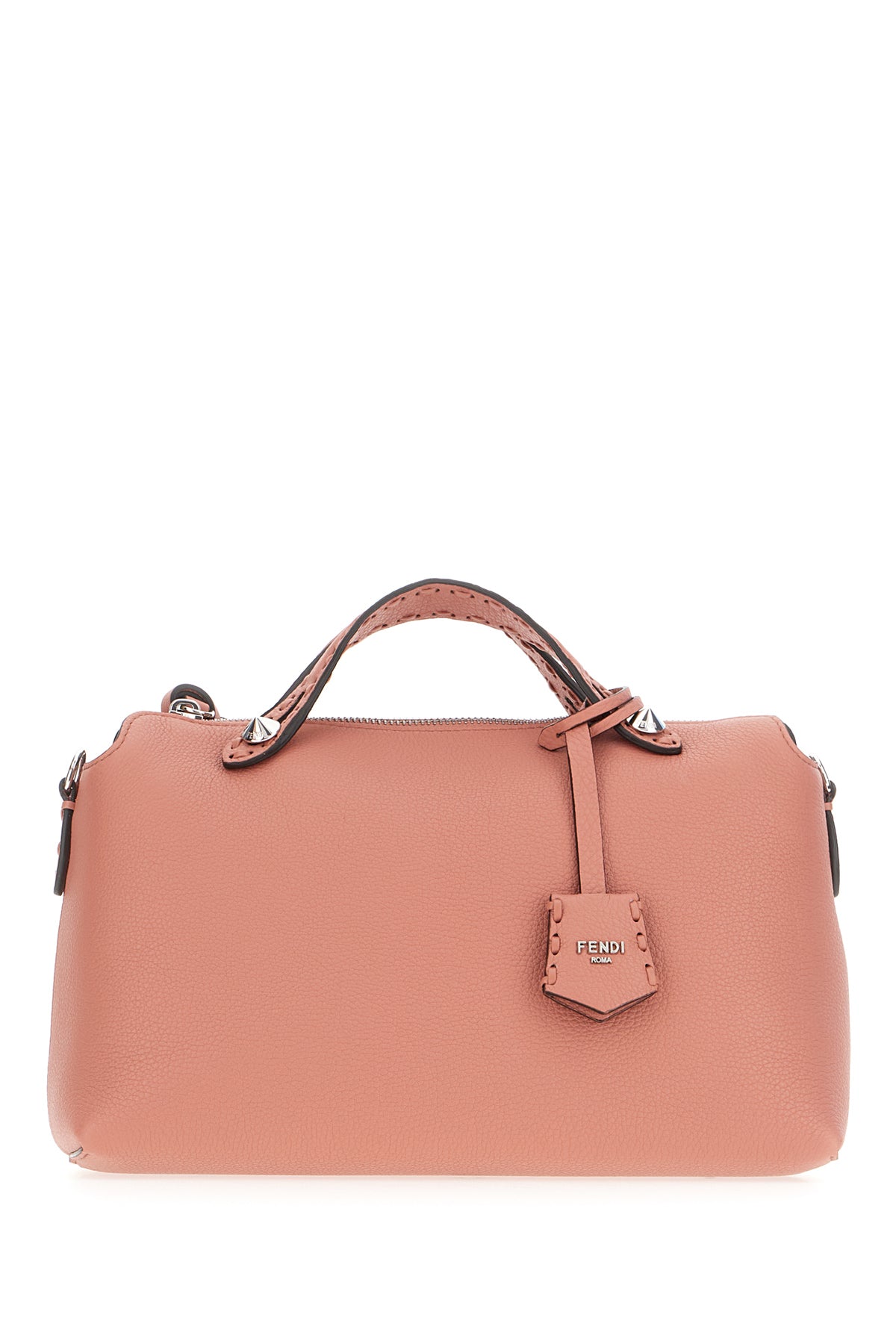 Handbag realized in smooth leather enriched by tonal leather accessory with metal lettering logo.