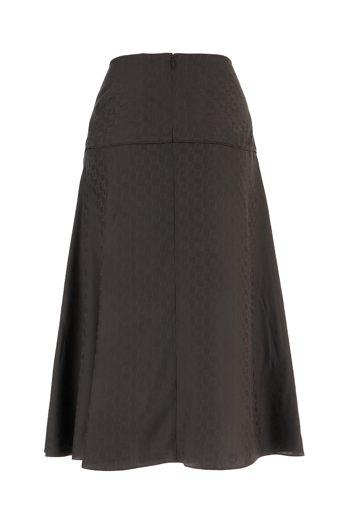 Flared skirt realized in pure silk characterized by FF embroidery on the entire surface.