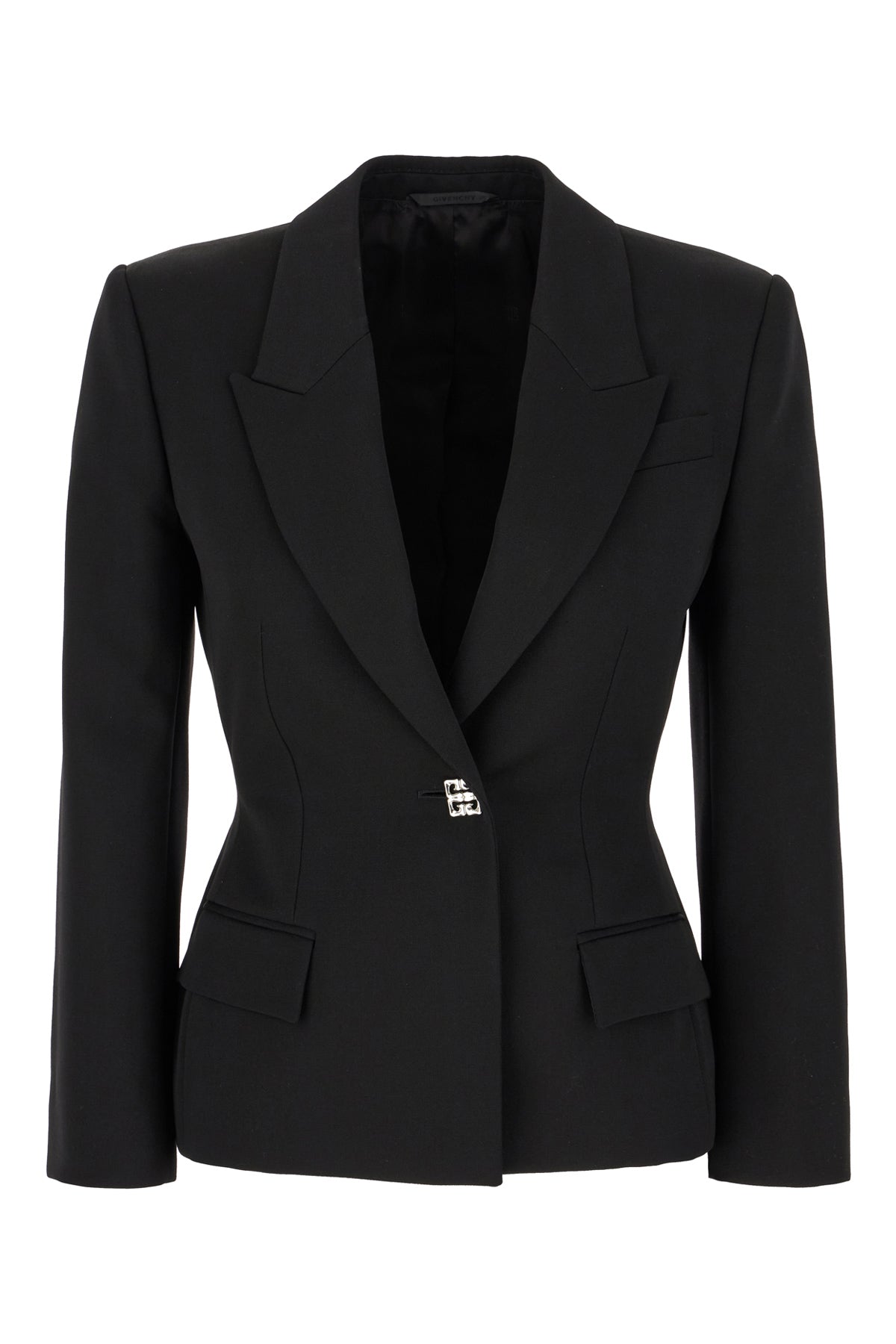 Blazer realized in pure wool characterized by peak lapels.