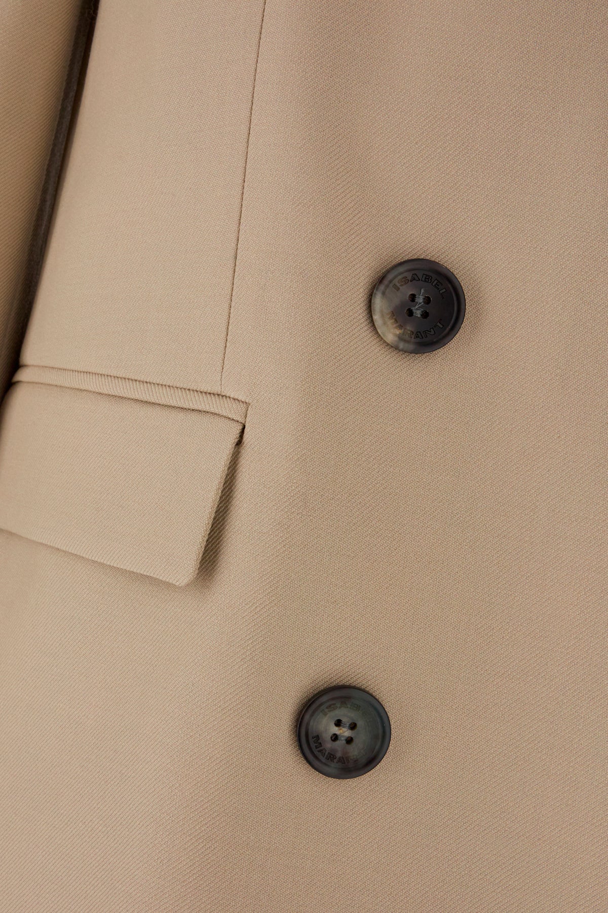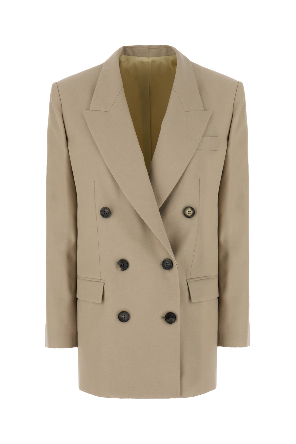 Blazer realized in pure virgin wool characterized by peak lapels.