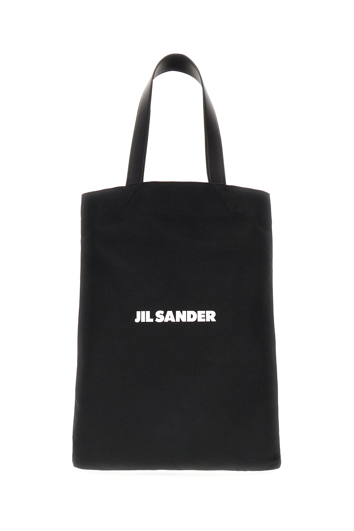 Shopping bag realized in cotton blend canvas with leather inserts characterized by contrasting printed logo at the front.