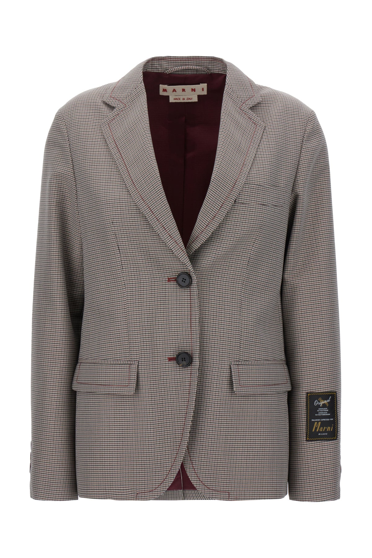 Blazer realized in wool blend characterized by peculiar embroidery on the entire surface enriched by logoed label on the sleeve.