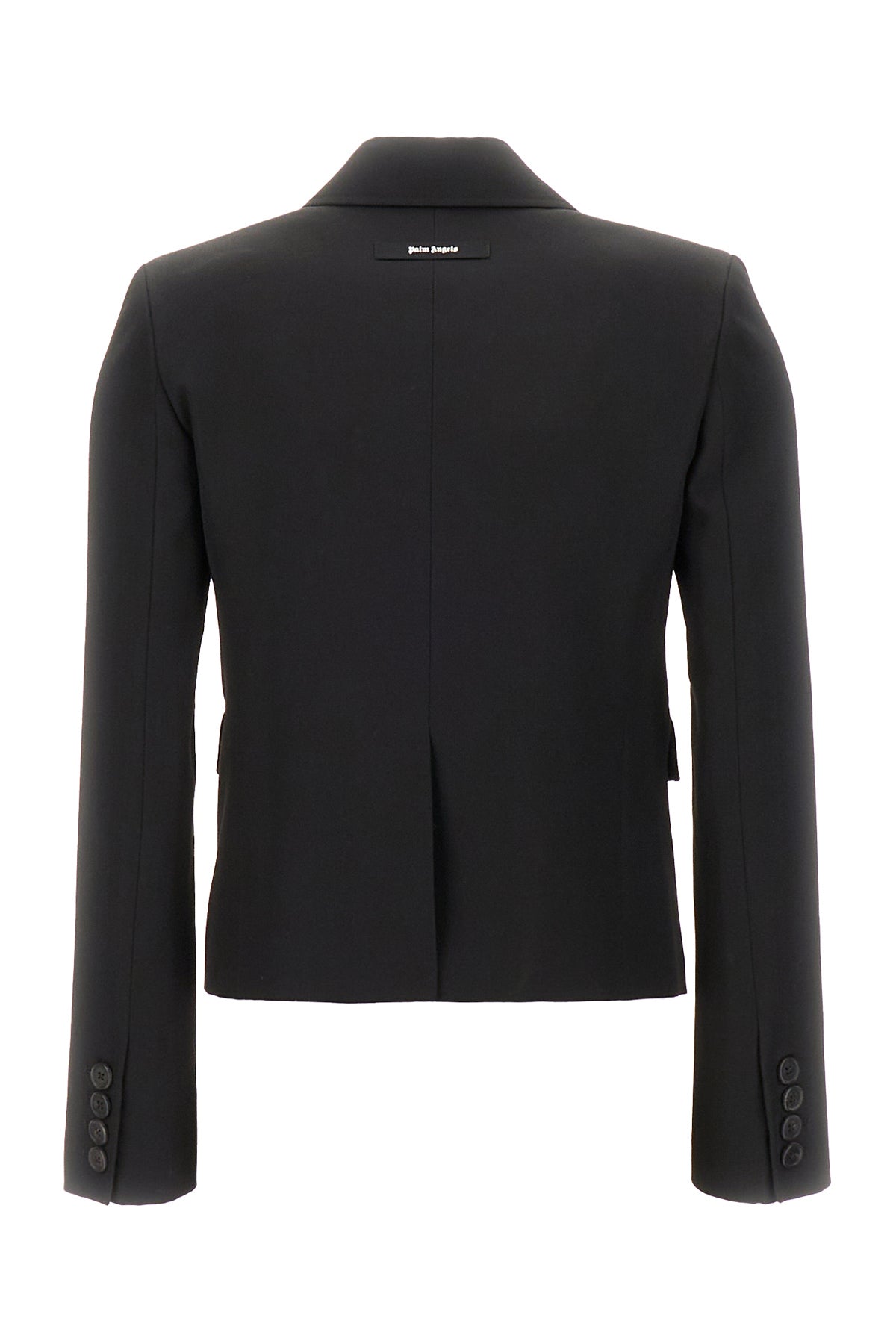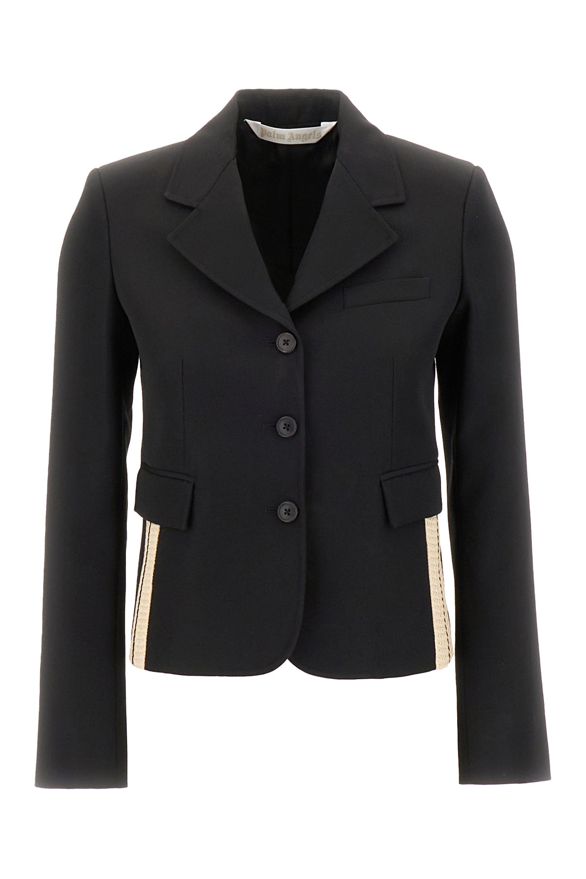 Blazer realized in polyester and virgin wool enriched by contrasting bands at the front and tonal logoed label at the back.