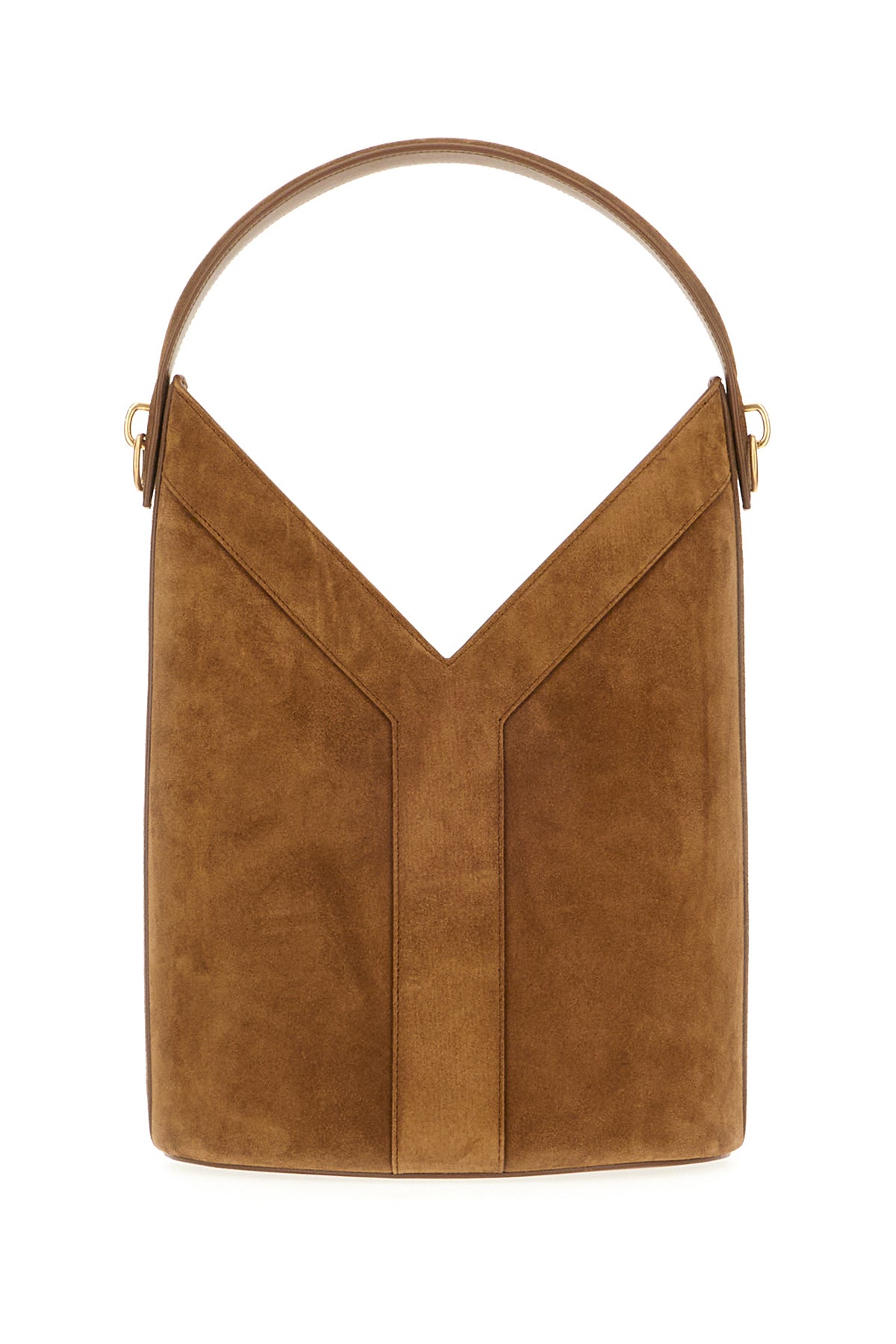 Brown suede Y Long bucket bag