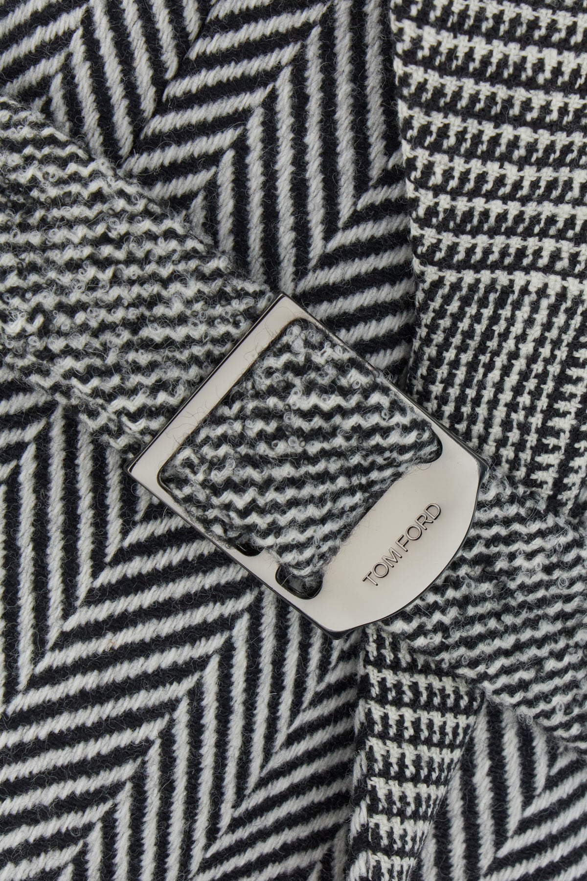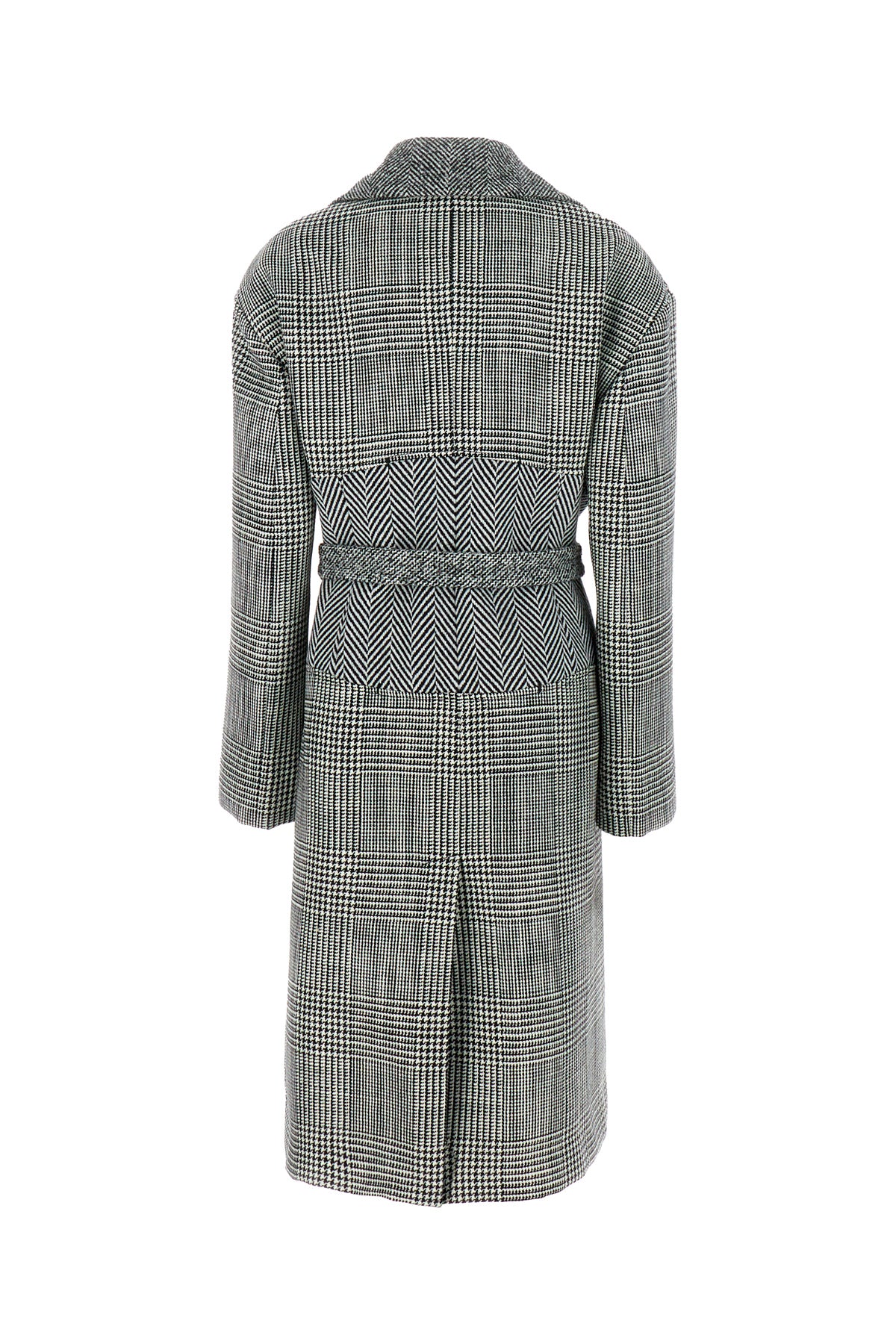Coat realized in pure cashmere characterized by peculiar embroidery on the entire surface and detachable adjustable fabric belt.