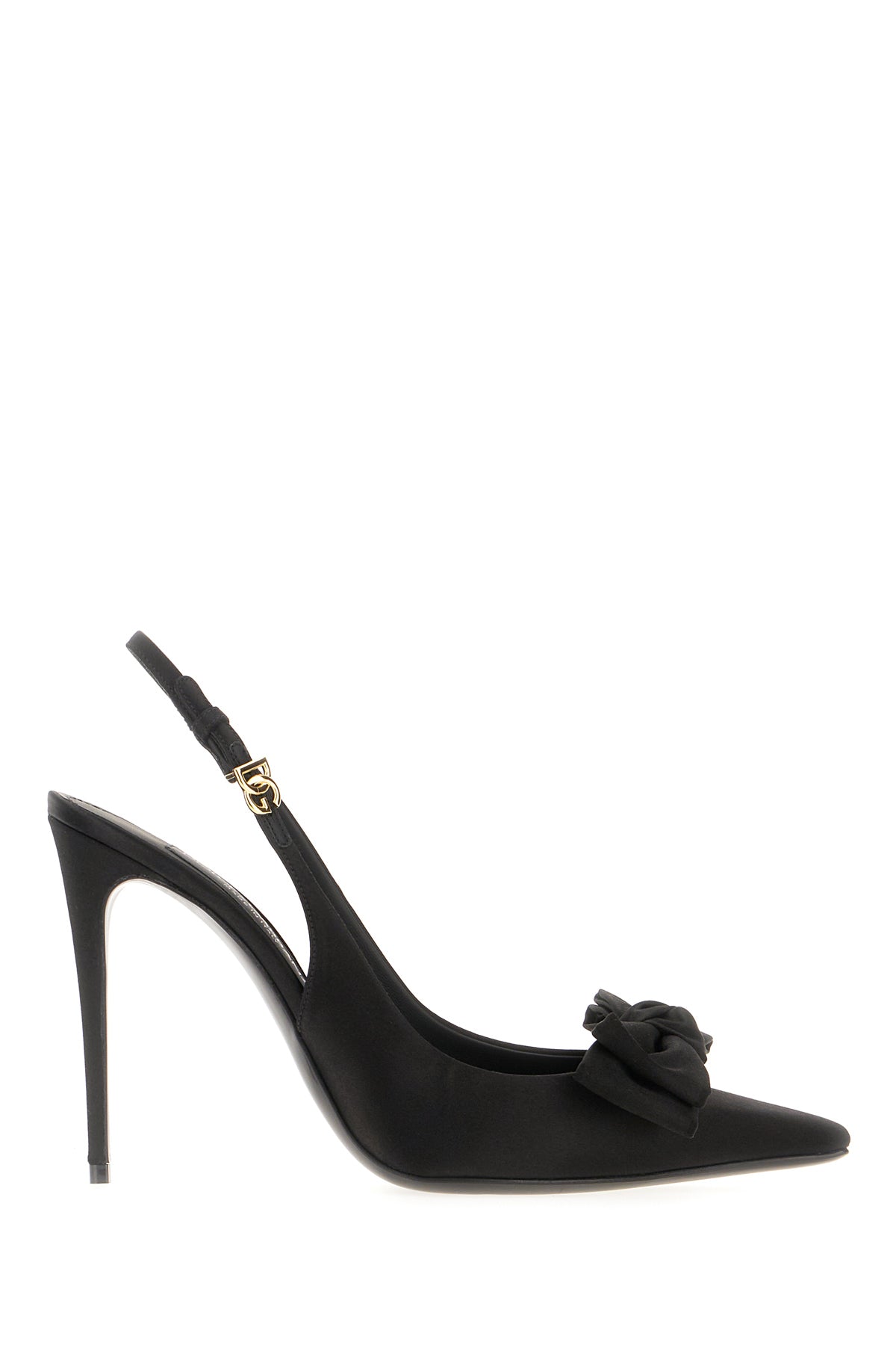 Slingback realized in satin enriched by metal DG detail on the side and tonal fabric boe on the toe.