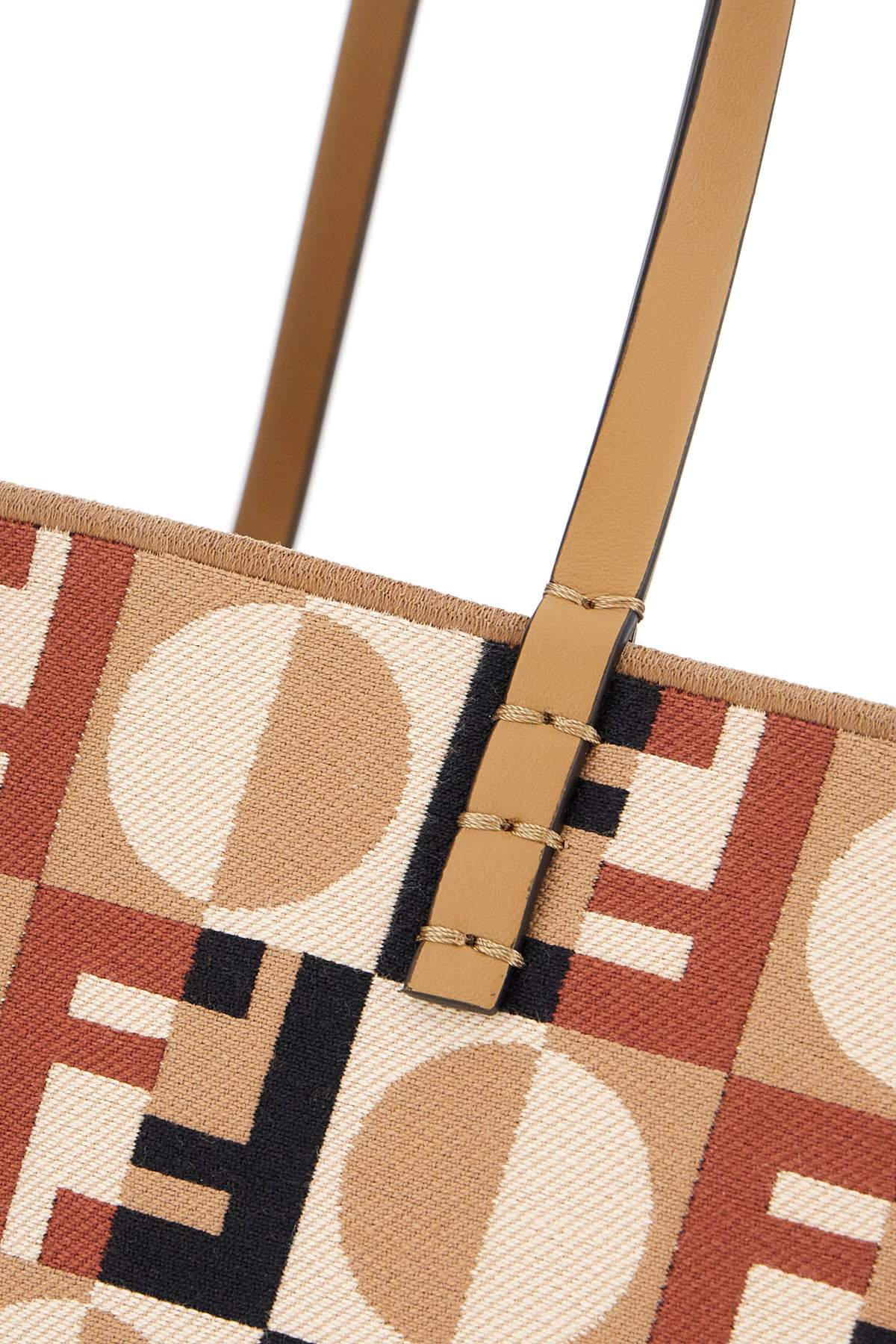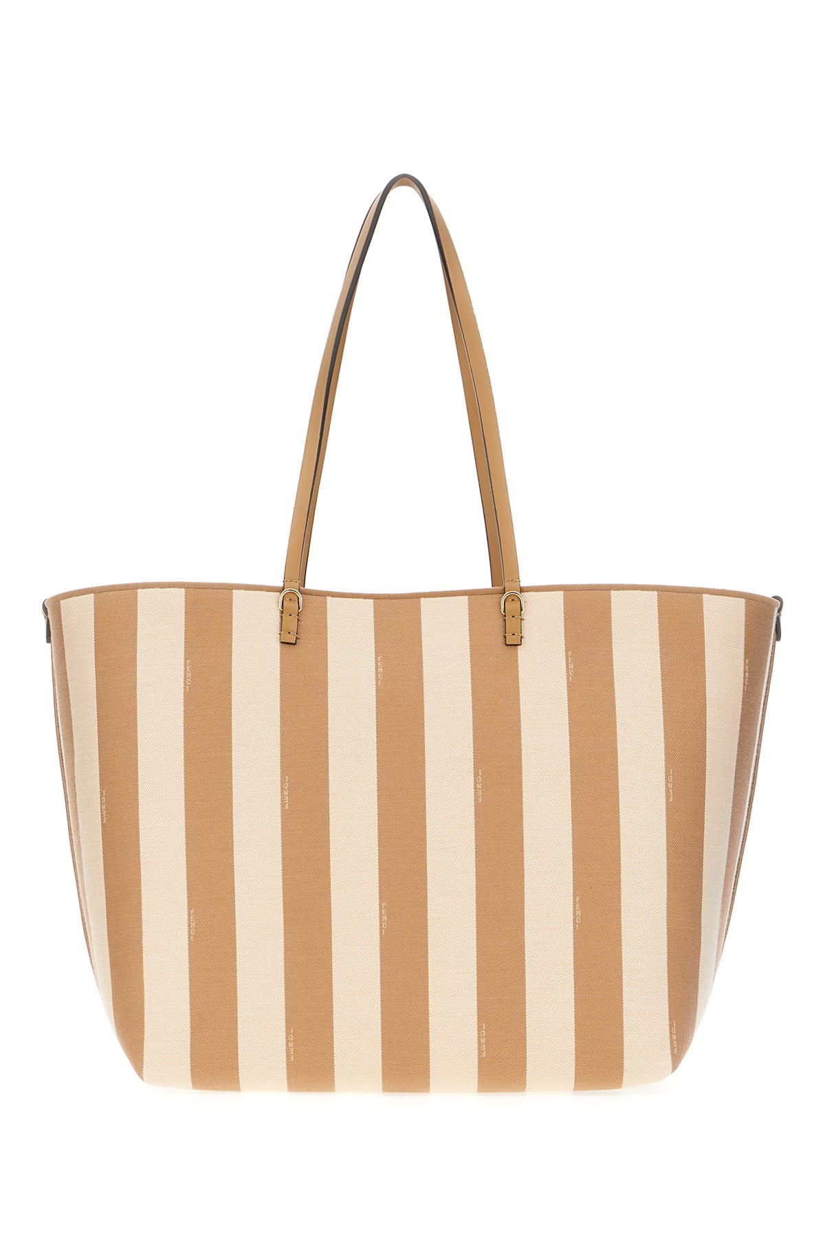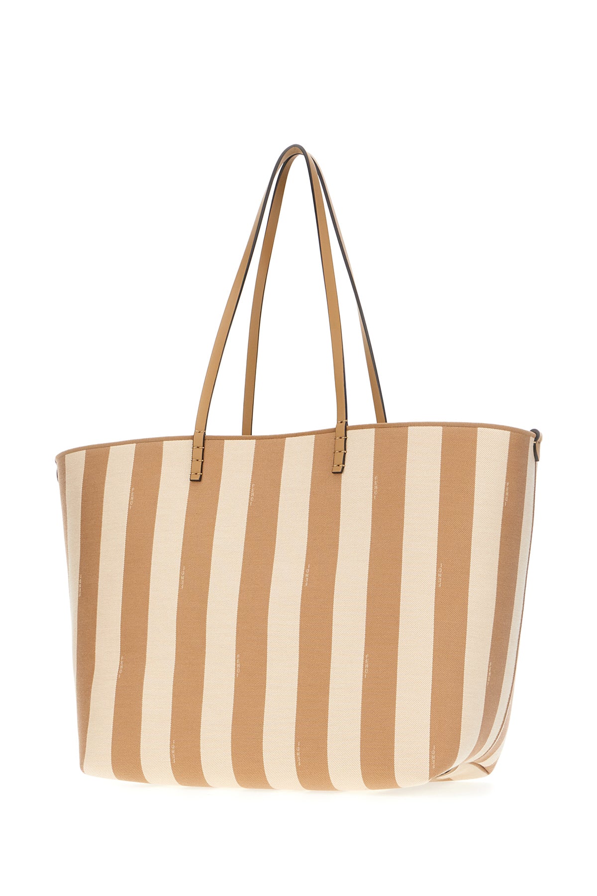 Reversible shopping bag realized in canvas characterized by striped embroidery on the entire surface.