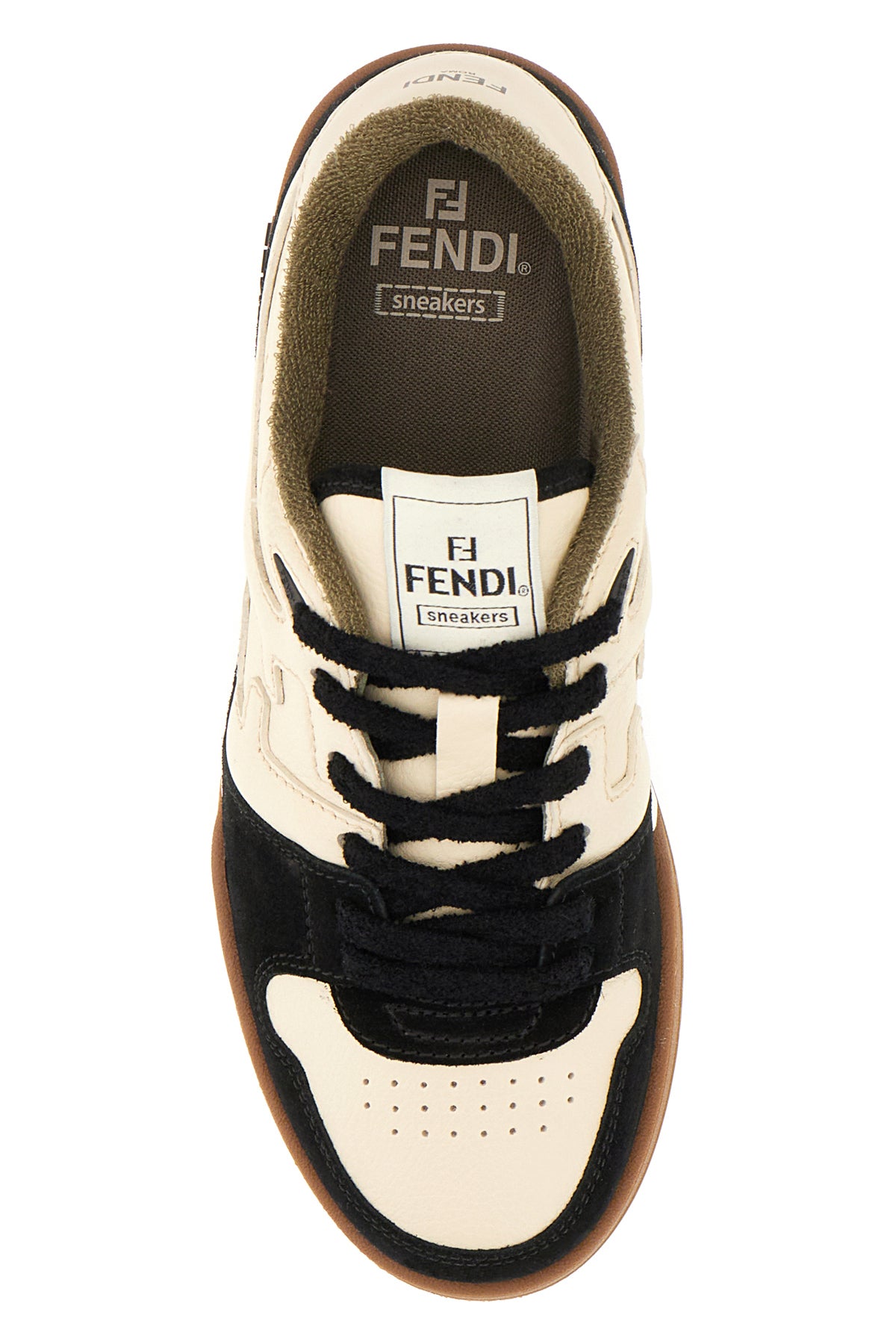 Sneakers realized in pebble calf leather with suede inserts characterized by printed logo in relief on the side and printed logo on the heel enriched by logoed label on the padded tongue and FF detail on the side.