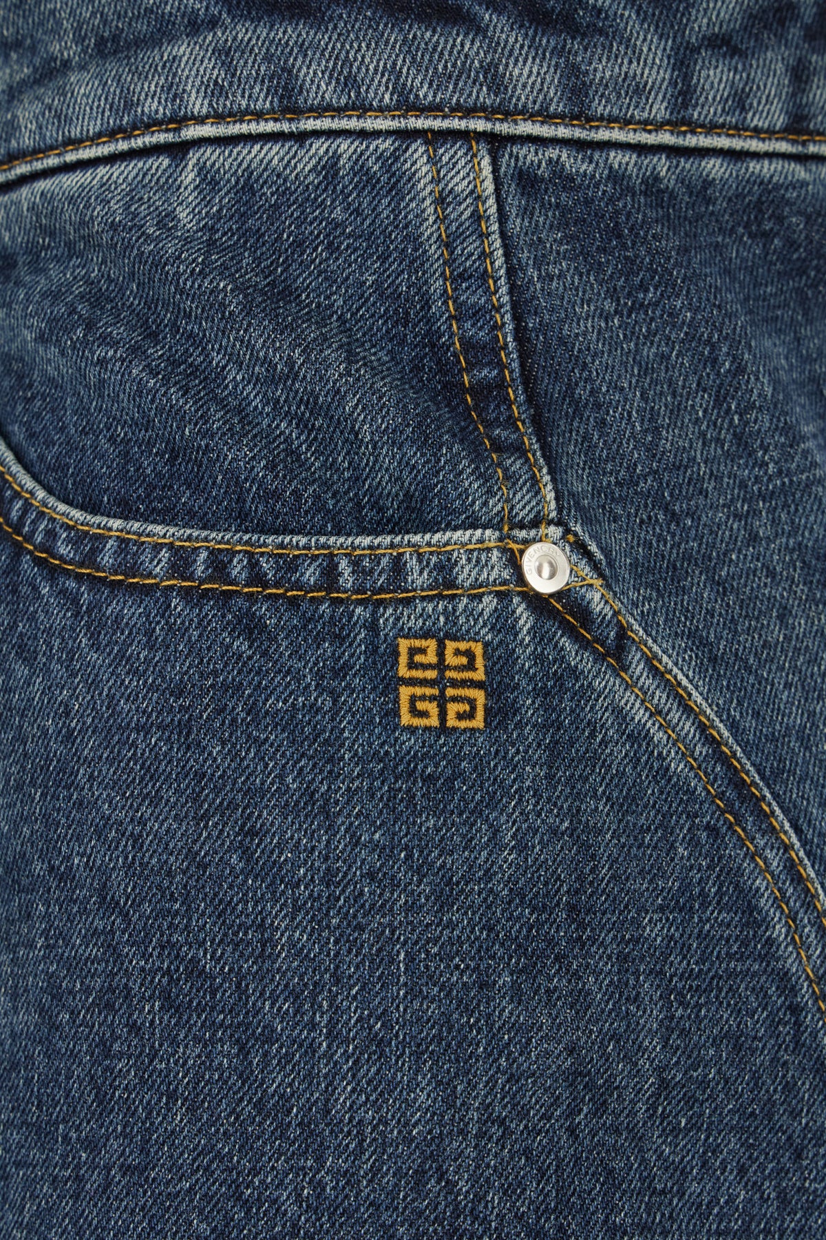 Mini skirt realized in pure cotton denim characterized by contrasting Ancora embroidery on the pocket and contrasting logoed leather label at the back.