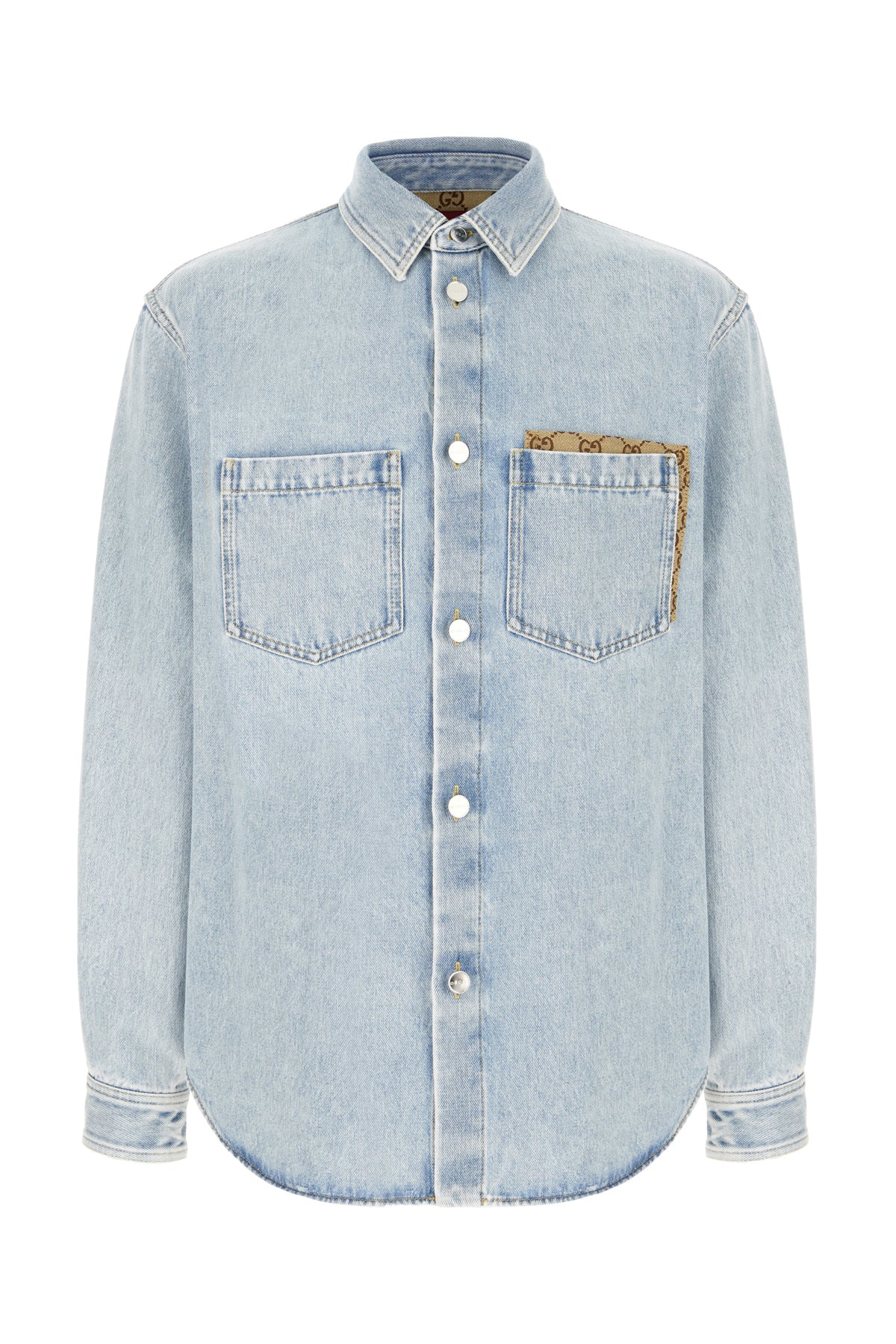 Shirt realized in stonewashed pure cotton denim enriched by GG Supreme fabric chest pocket.