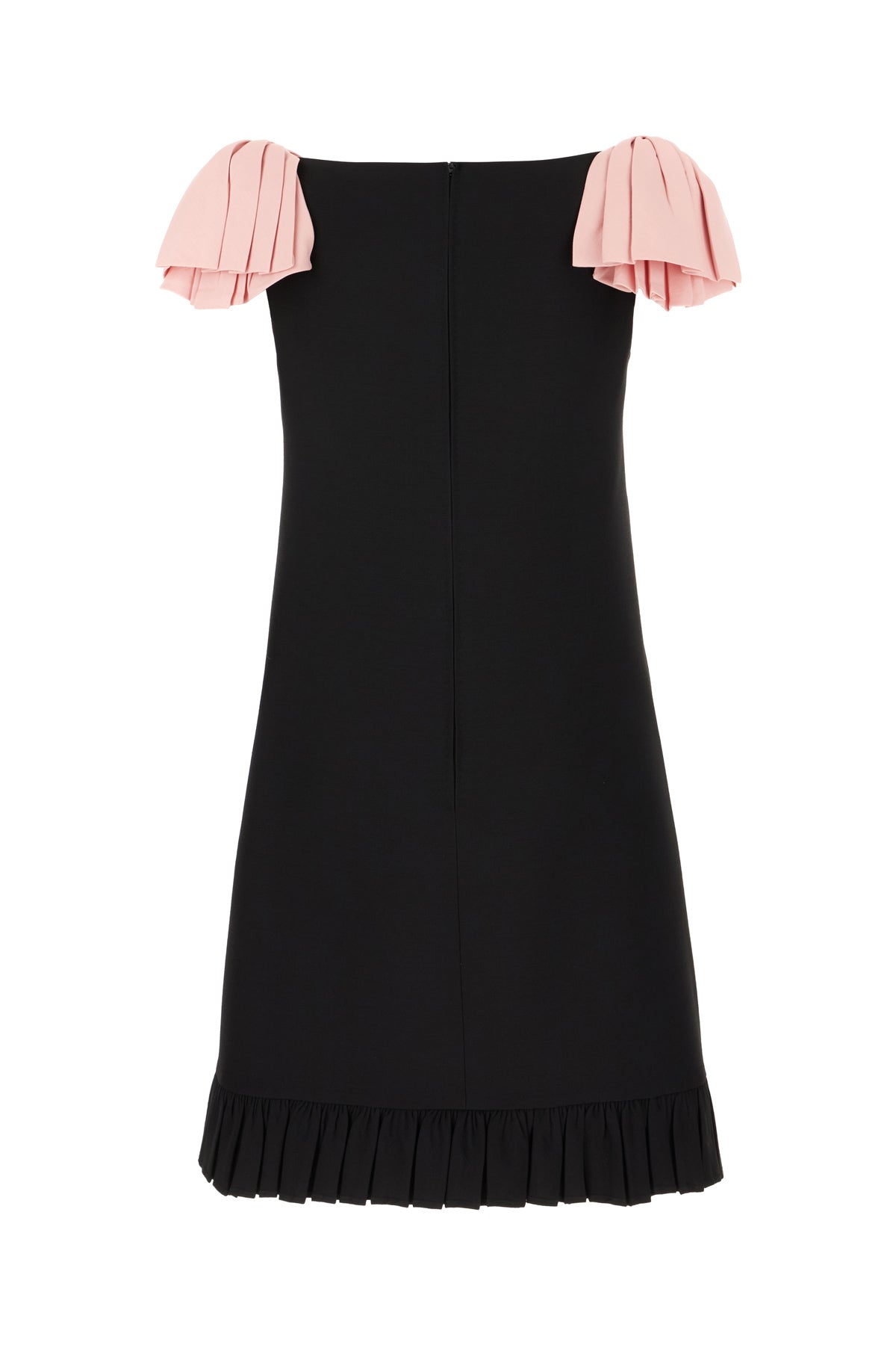 Mini dress realized in virgin wool and silk enriched by contrasting fabric details on the shoulder straps.