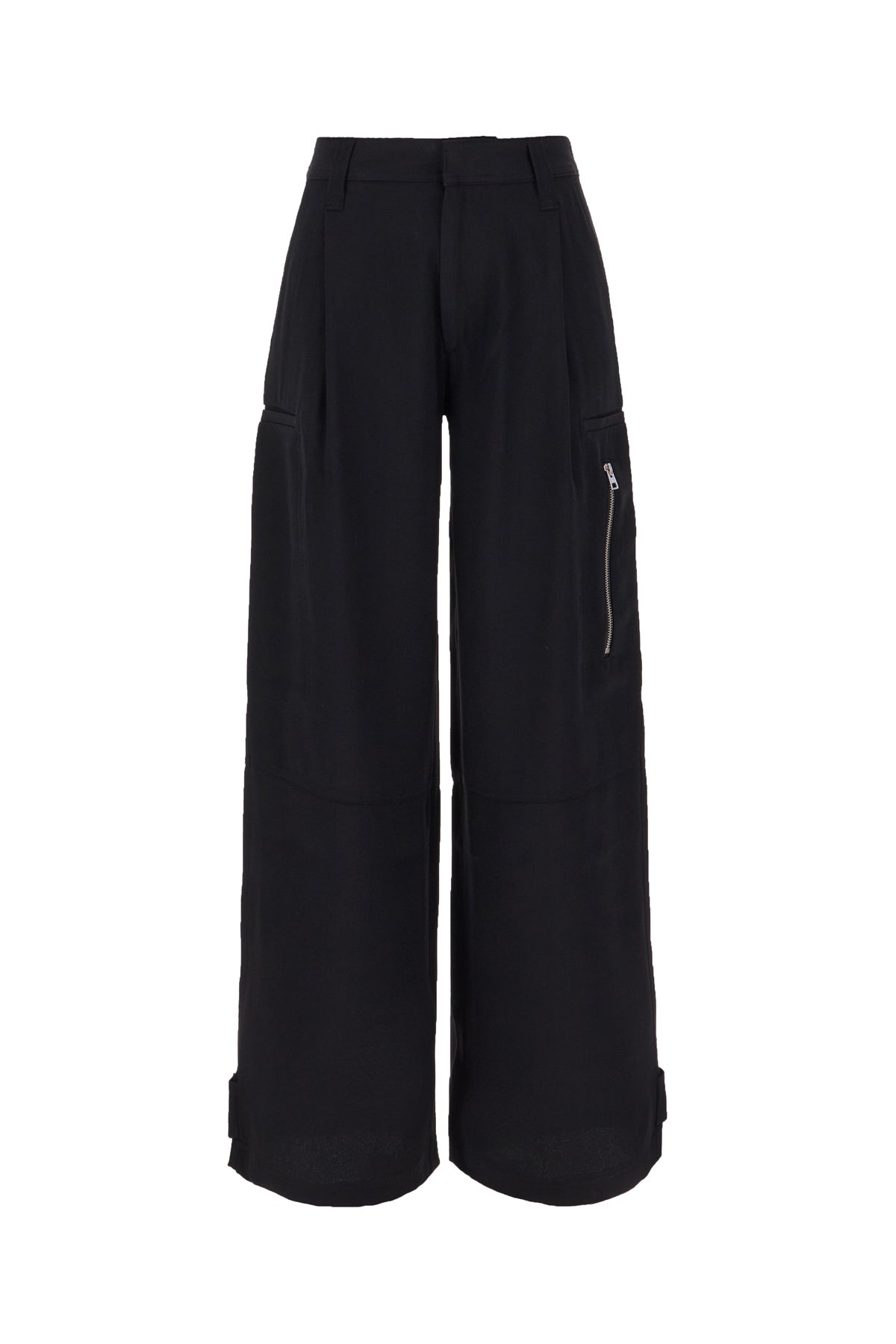 Wide-leg cargo pants realized in acetate blend characterized by inverted pleats at the front.