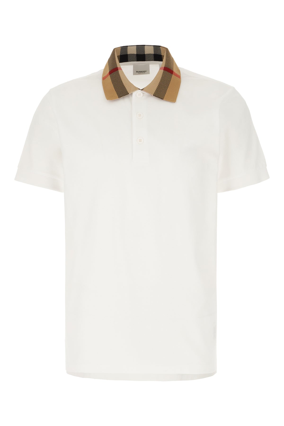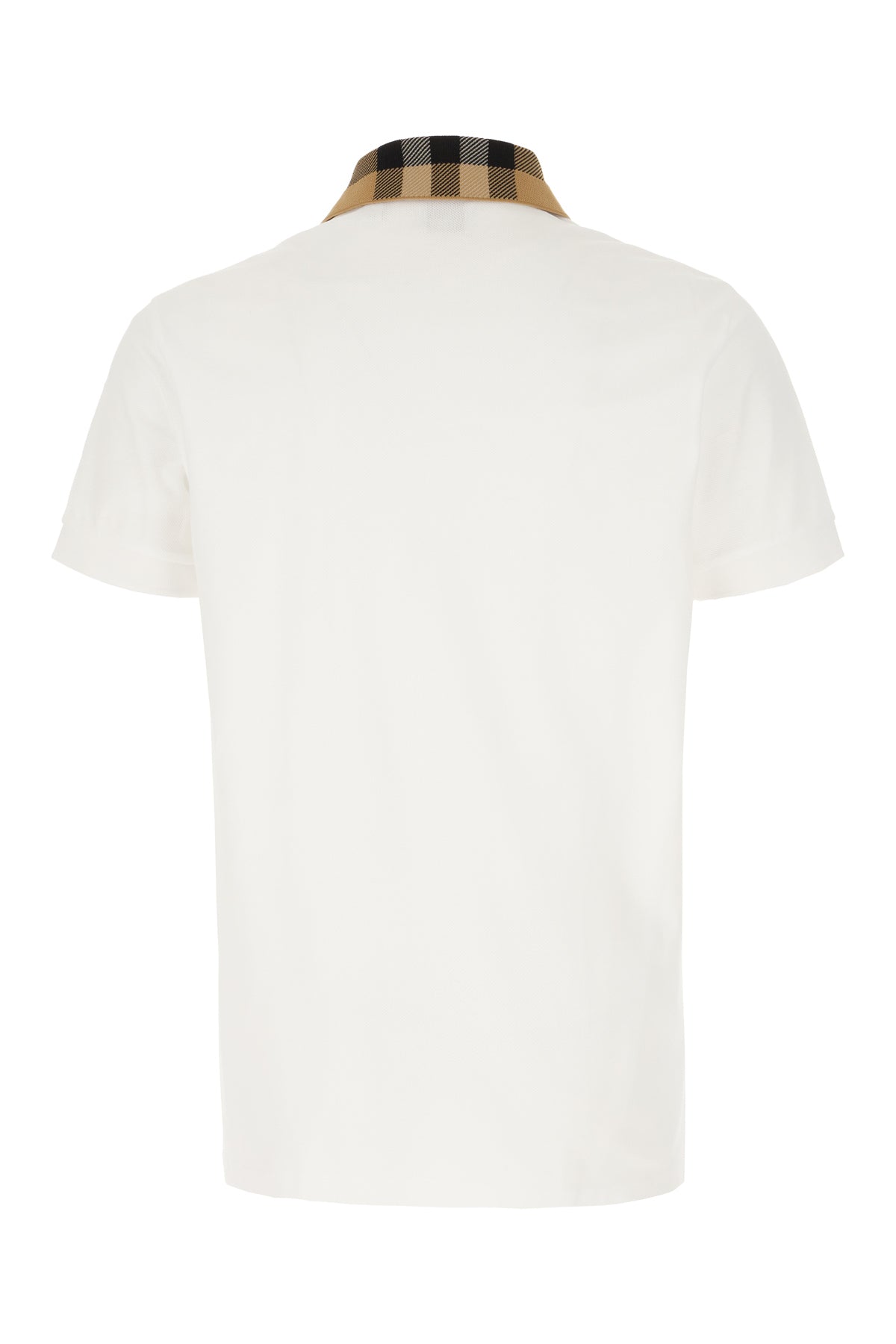 Polo shirt realized in pure cotton piquet characterized by contrasting Burberry Check embroidery on the collar.