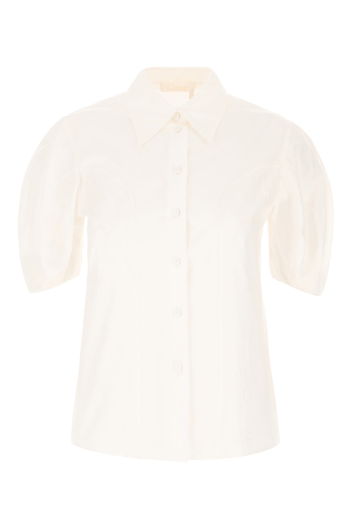 Blouse realized in pure cotton characterized by peculiar tonal floral embroidery at the front.