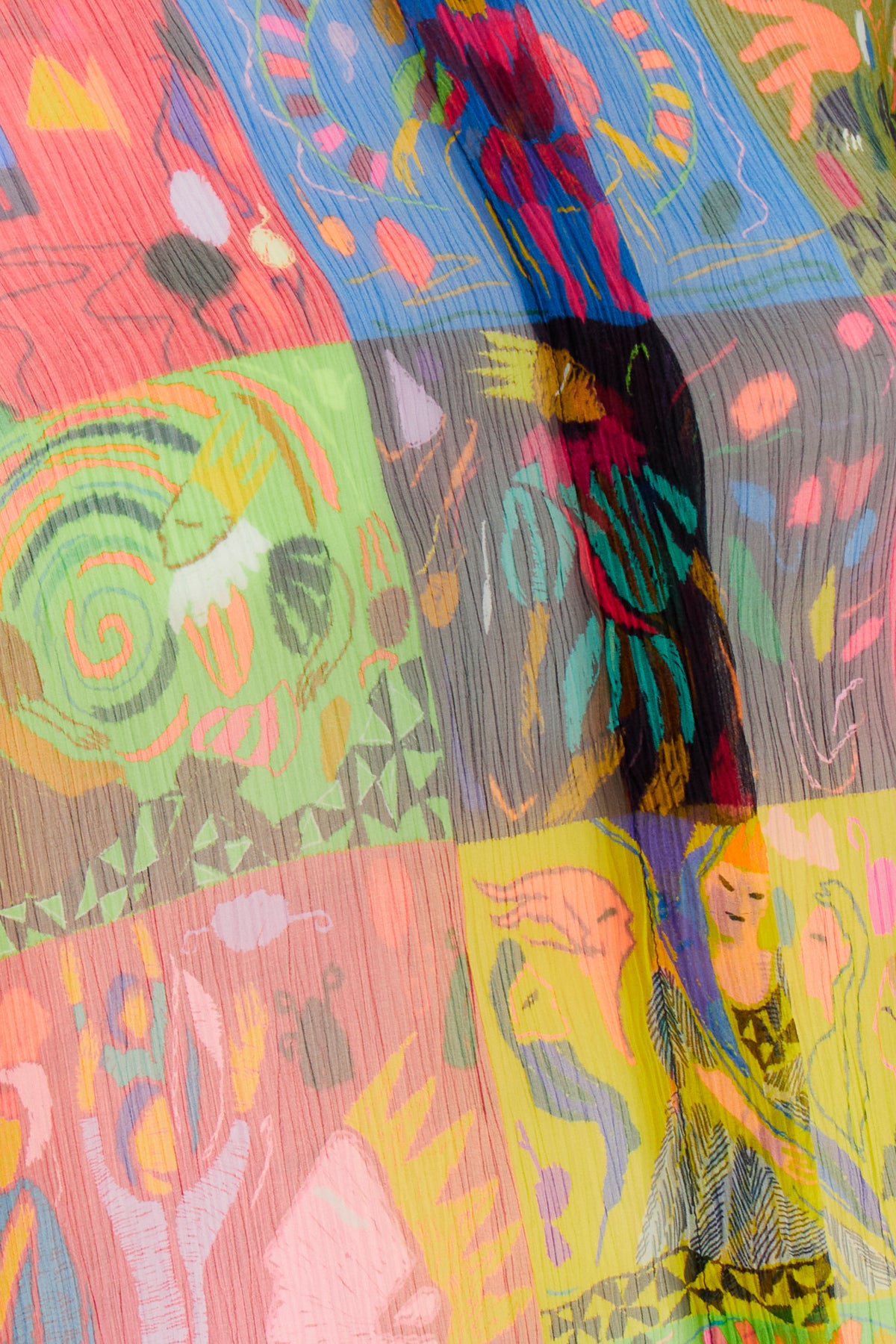Blouse realized in semi transparent pure silk characterized by Esther print on the entire surface.