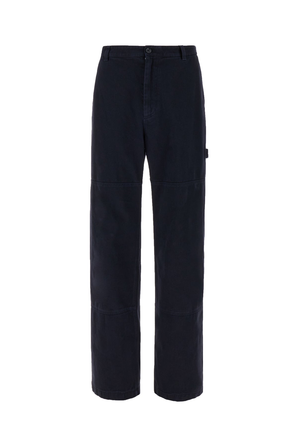 Wide-leg jeans realized in pure cotton denim enriched by metal logoed plate at the back.