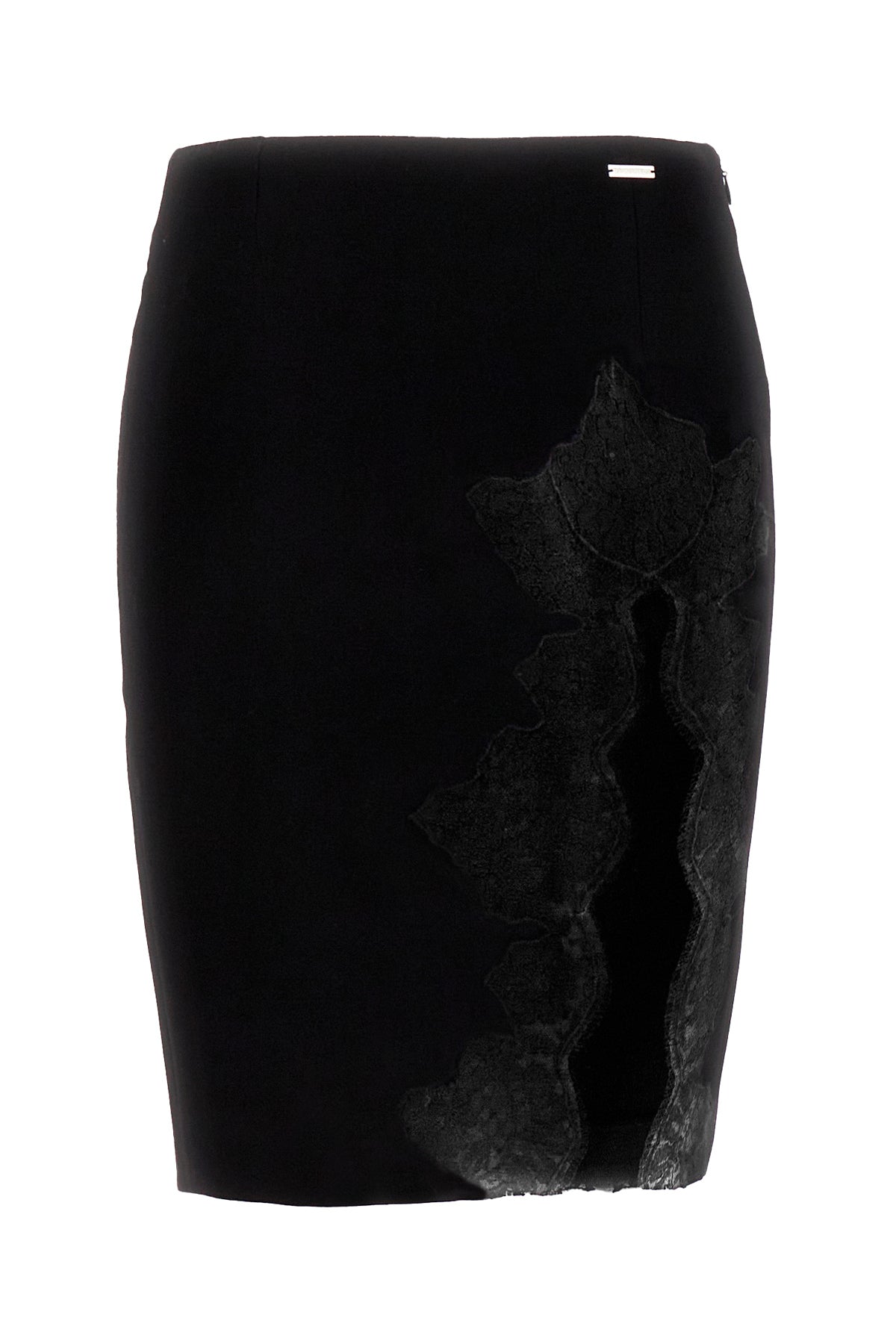 Skirt realized in pure virgin wool enriched by logoed plate and tonal lace detail at the front.