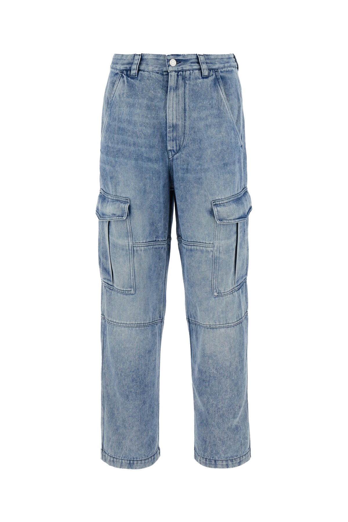 Cargo jeans realized in stonewashed lyocell denim.