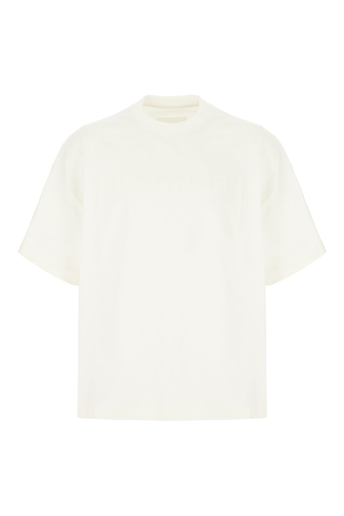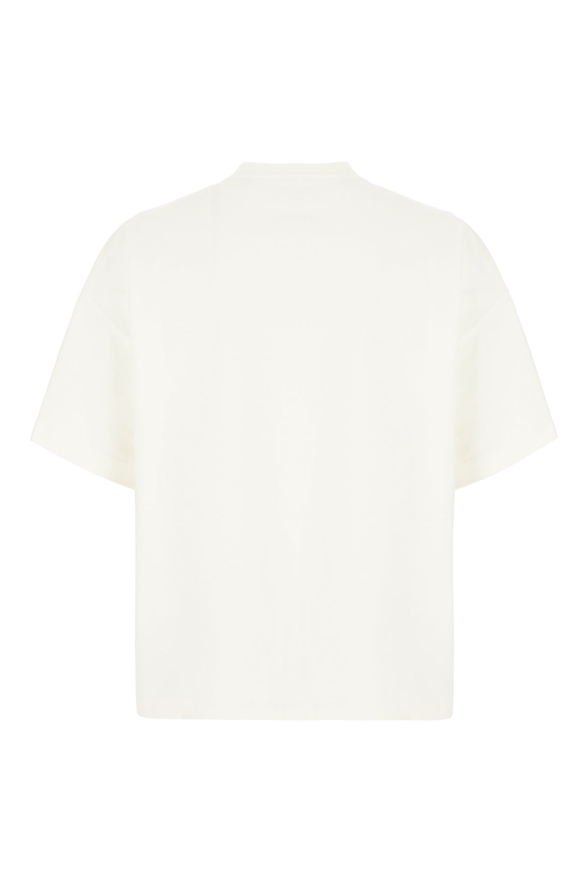 T-shirt realized in pure cotton characterized by tonal logoed print at the front enriched by iconic tricolor label at the back.