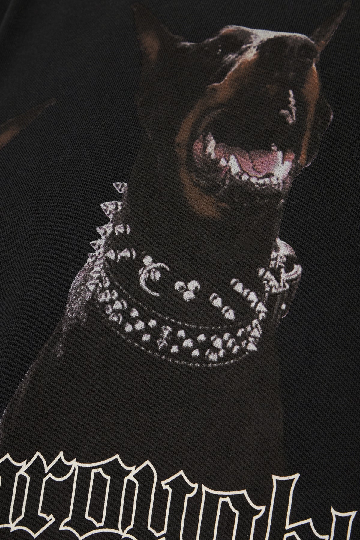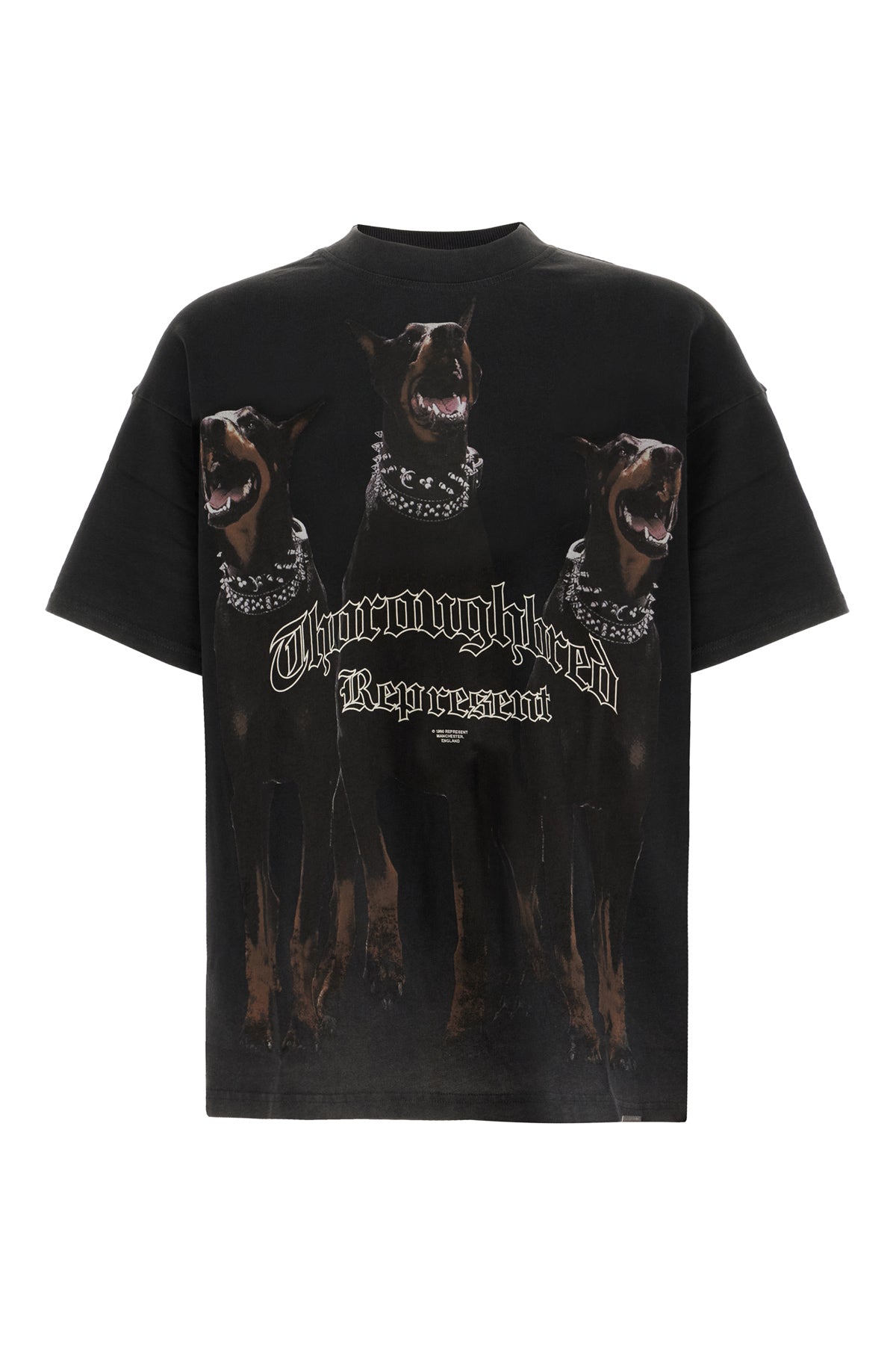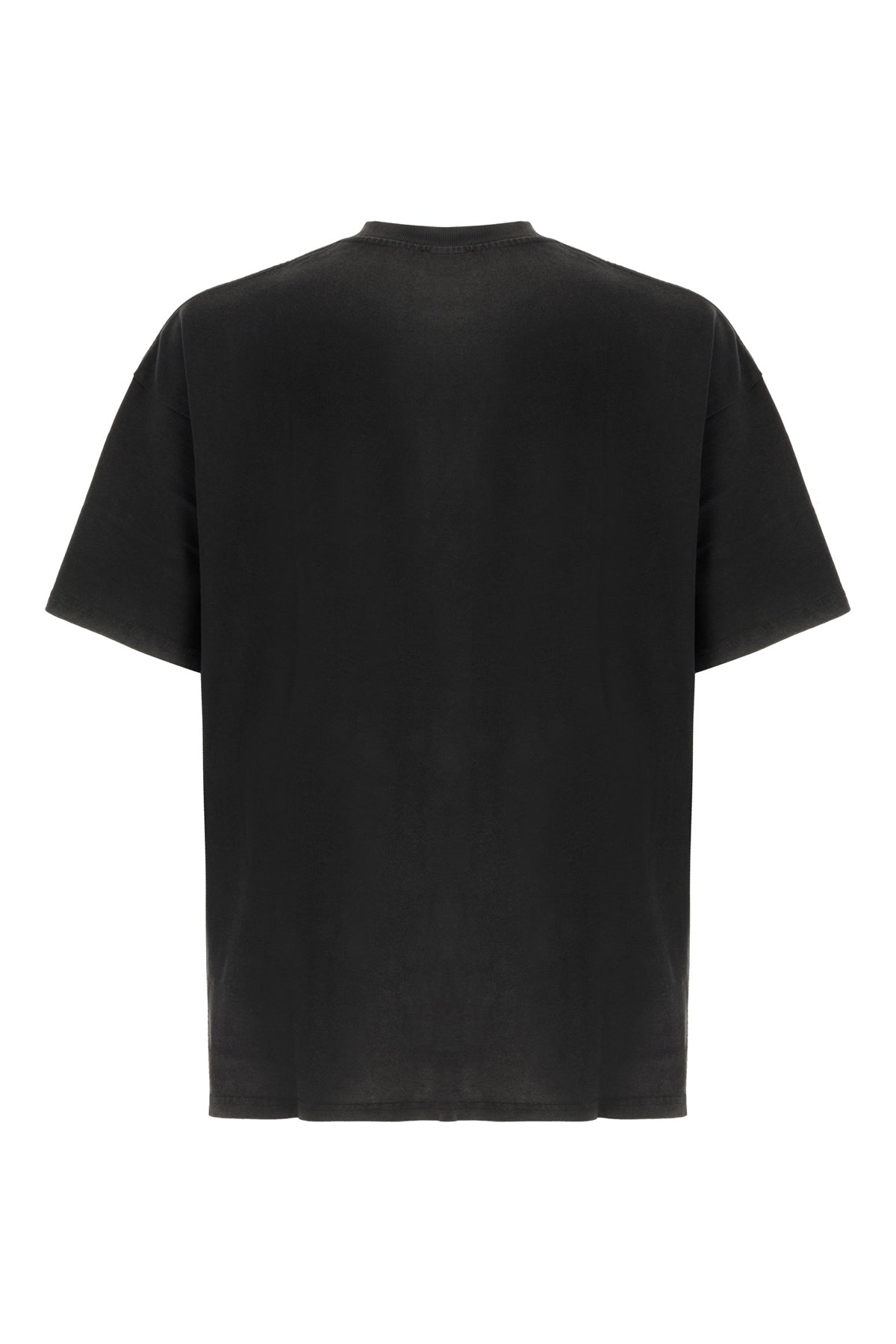 T-shirt realized in pure cotton characterized by contrasting logoed print at the front enriched by metal logoed placket on the hemline.