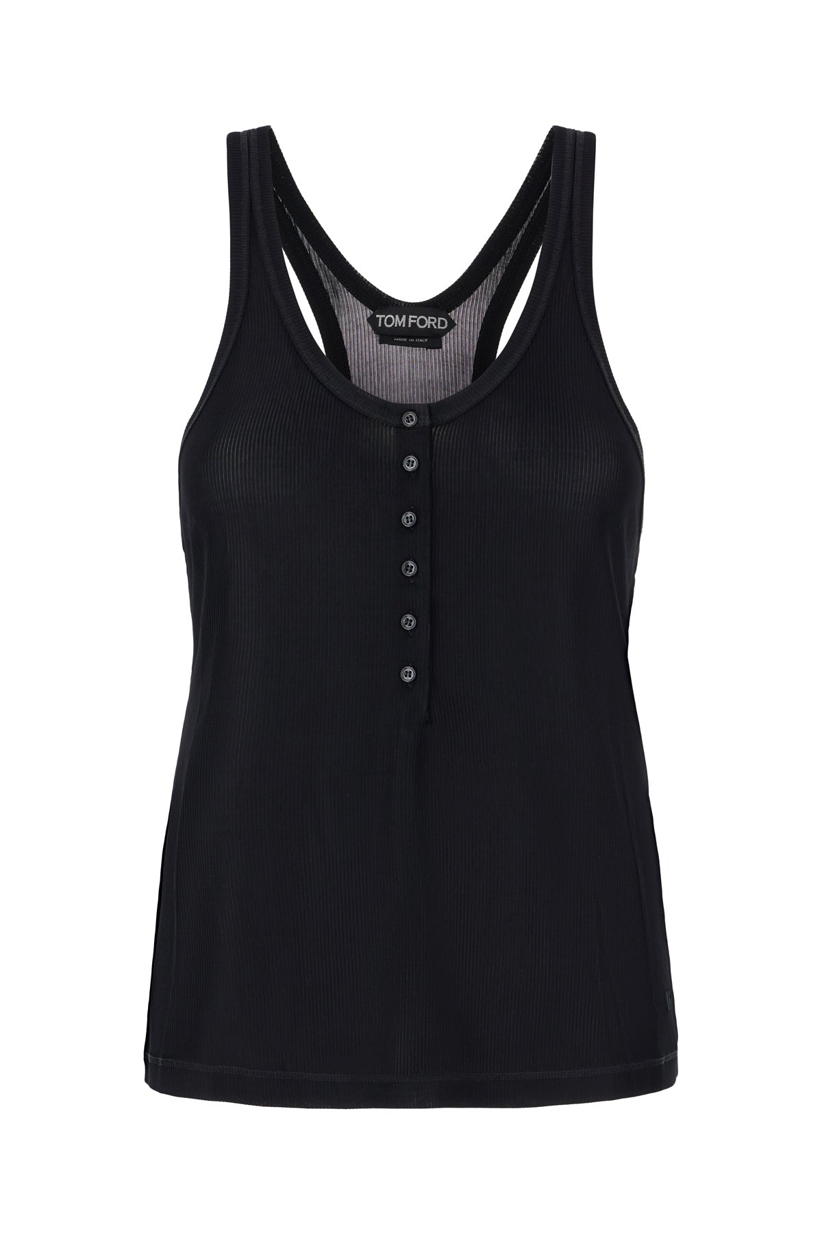 Tank top realized in ribbed stretch viscose characterized by tonal embroidered TF logo on the hemline.