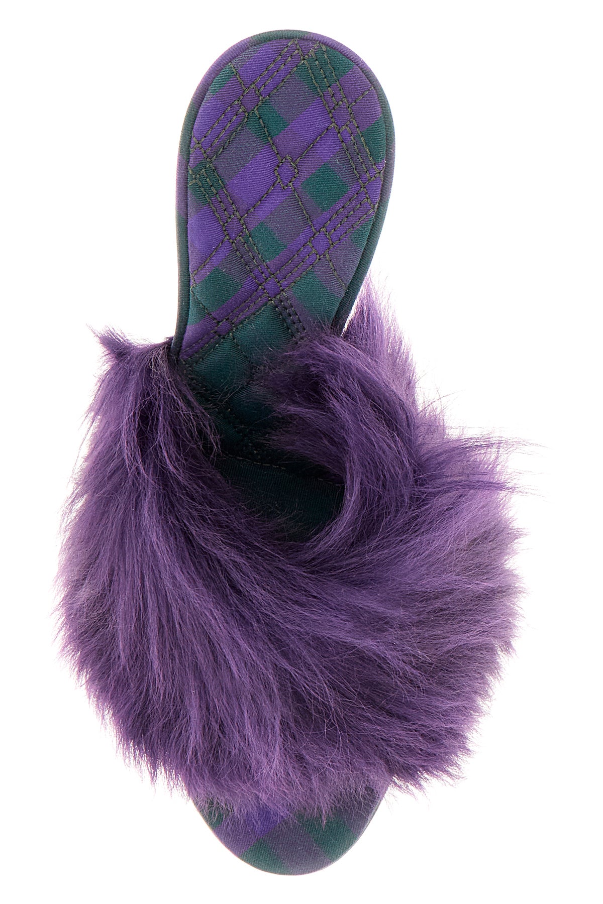 Sandals realized in fabric characterized by dyed fur insert at the front.