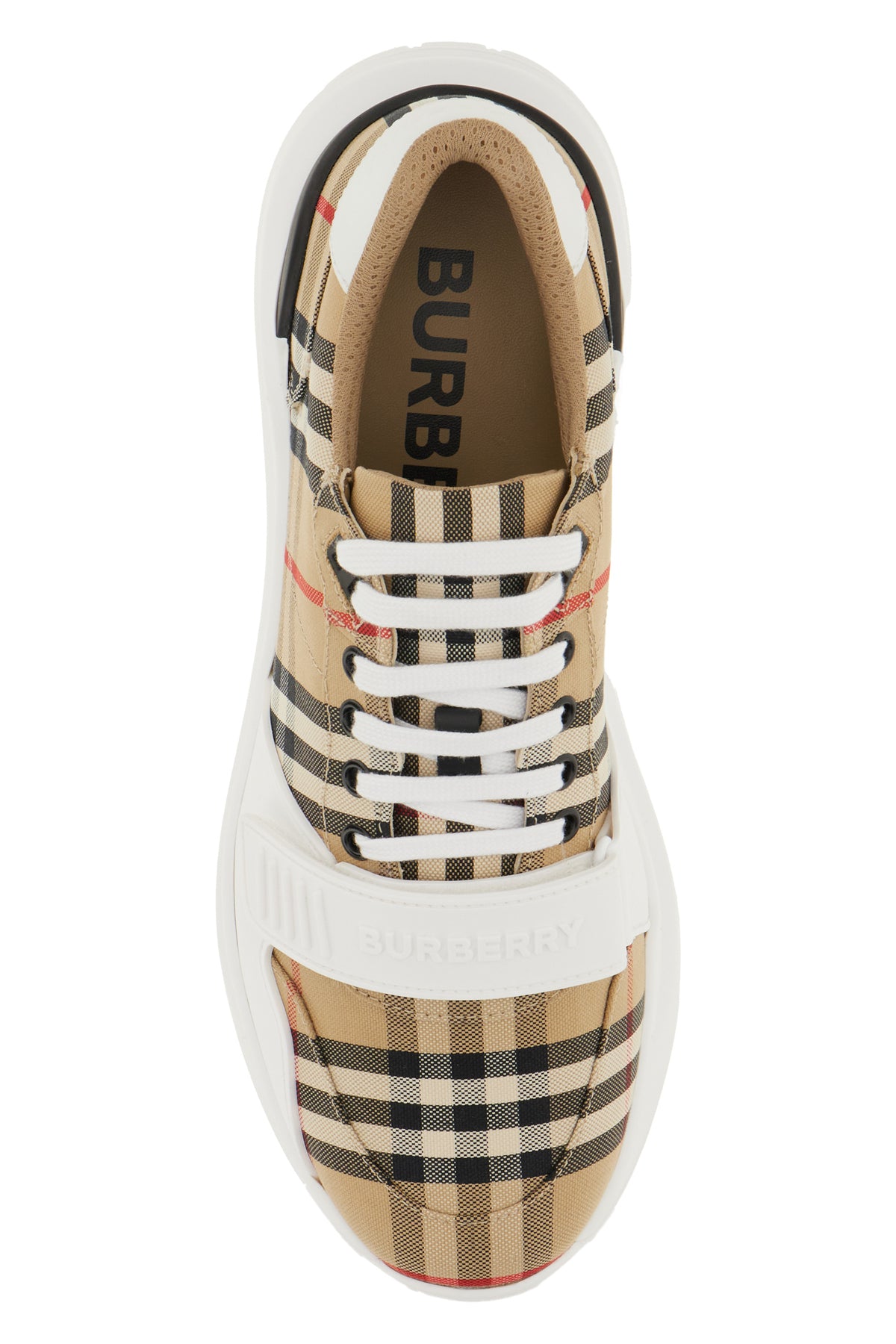 Sneakers realized in leather and Burberry Check fabric with rubber inserts characterized by embossed logo on the heel.