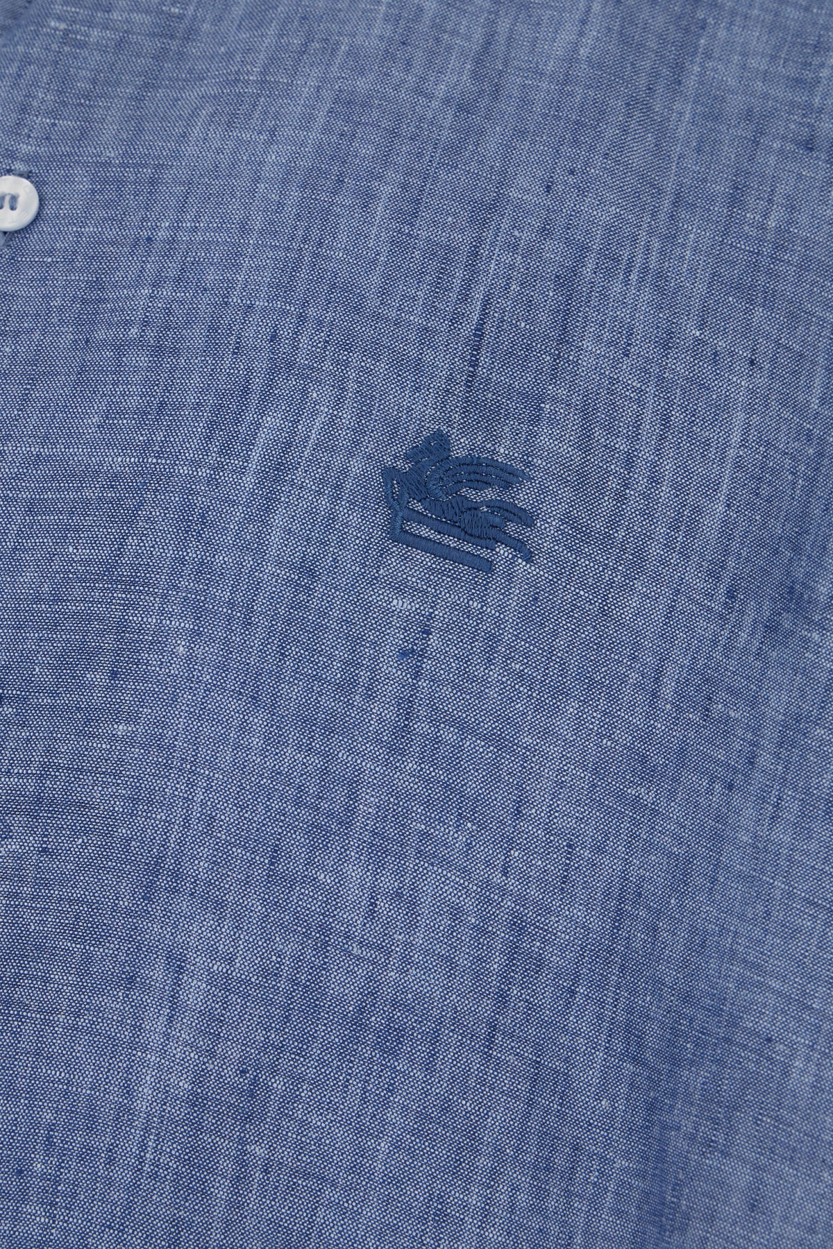 Shirt realized in denim effect pure linen characterized by tonal Pegaso embroidery on the chest.