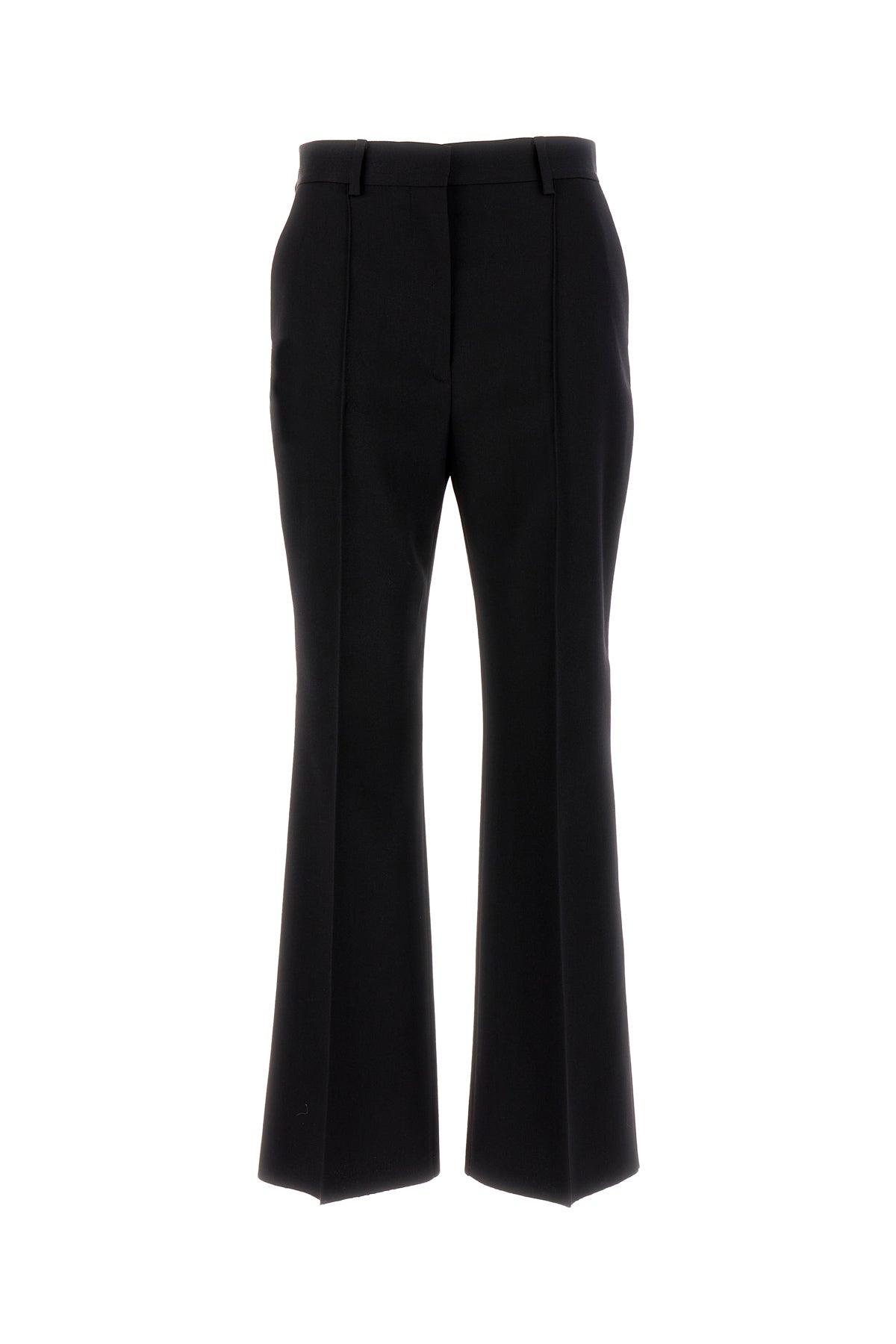 Straight cut pant realized in pure wool characterized by central seamed pleats.
