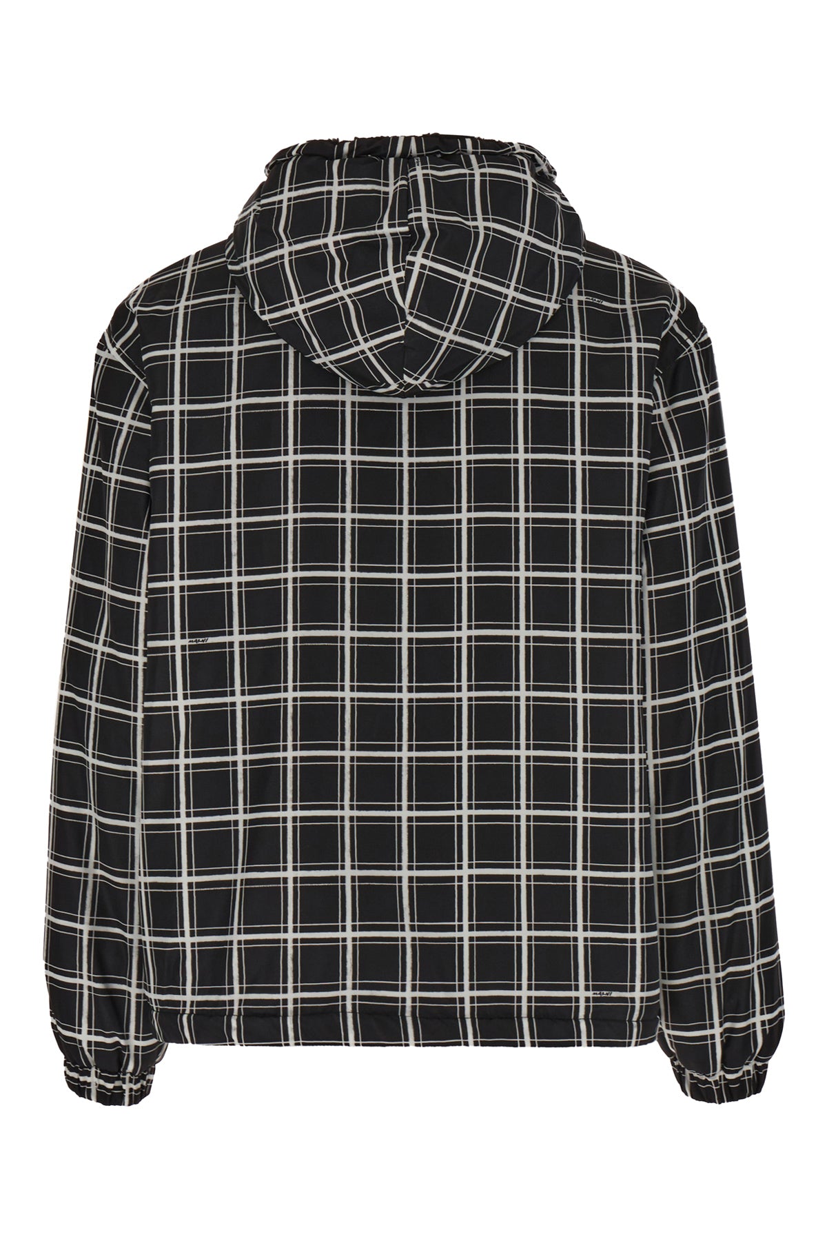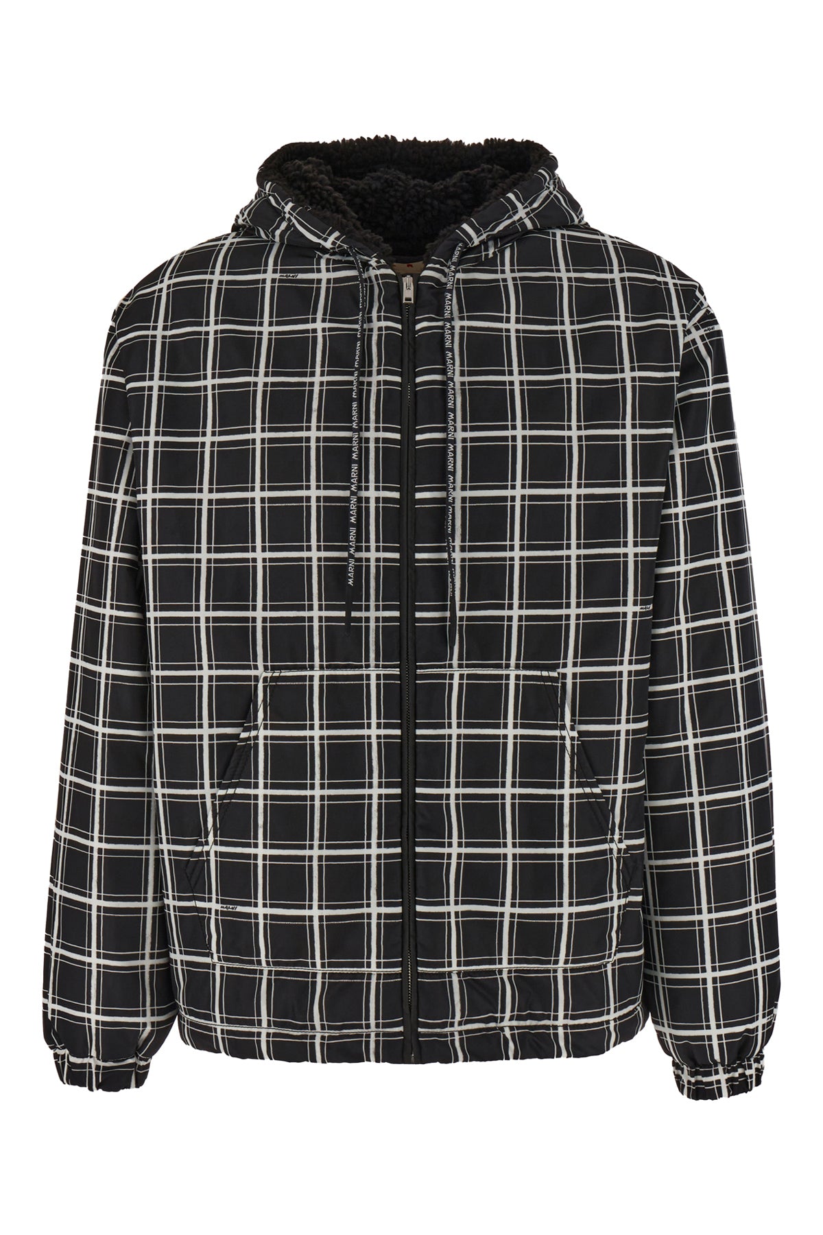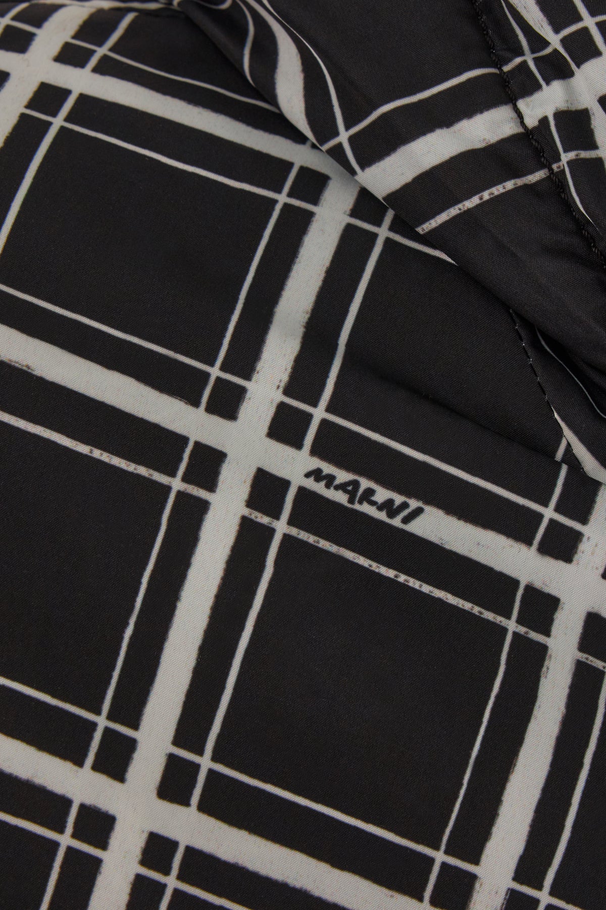 Padded jacket realized in polyester characterized by checkered print on the entire surface.