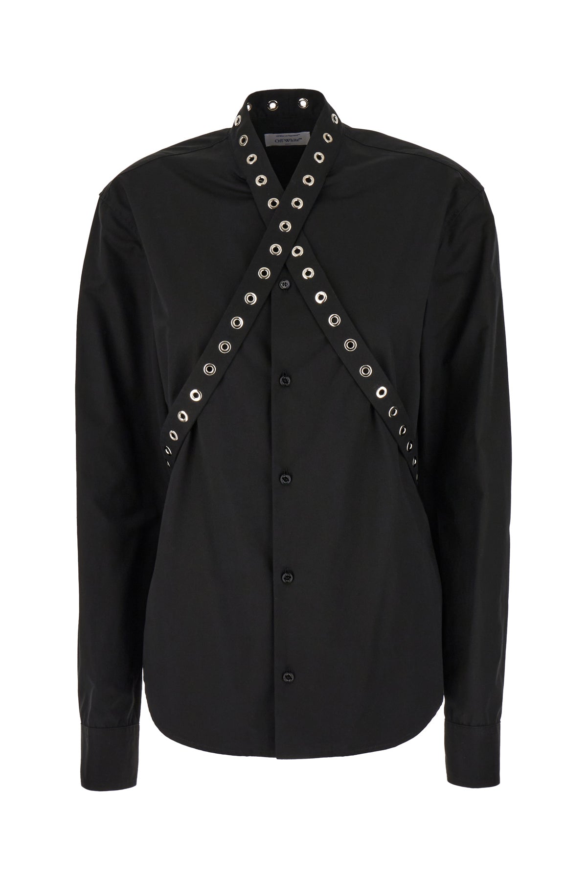 Shirt realized in pure cotton enriched by tonal fabric insert with metal details at the front.
