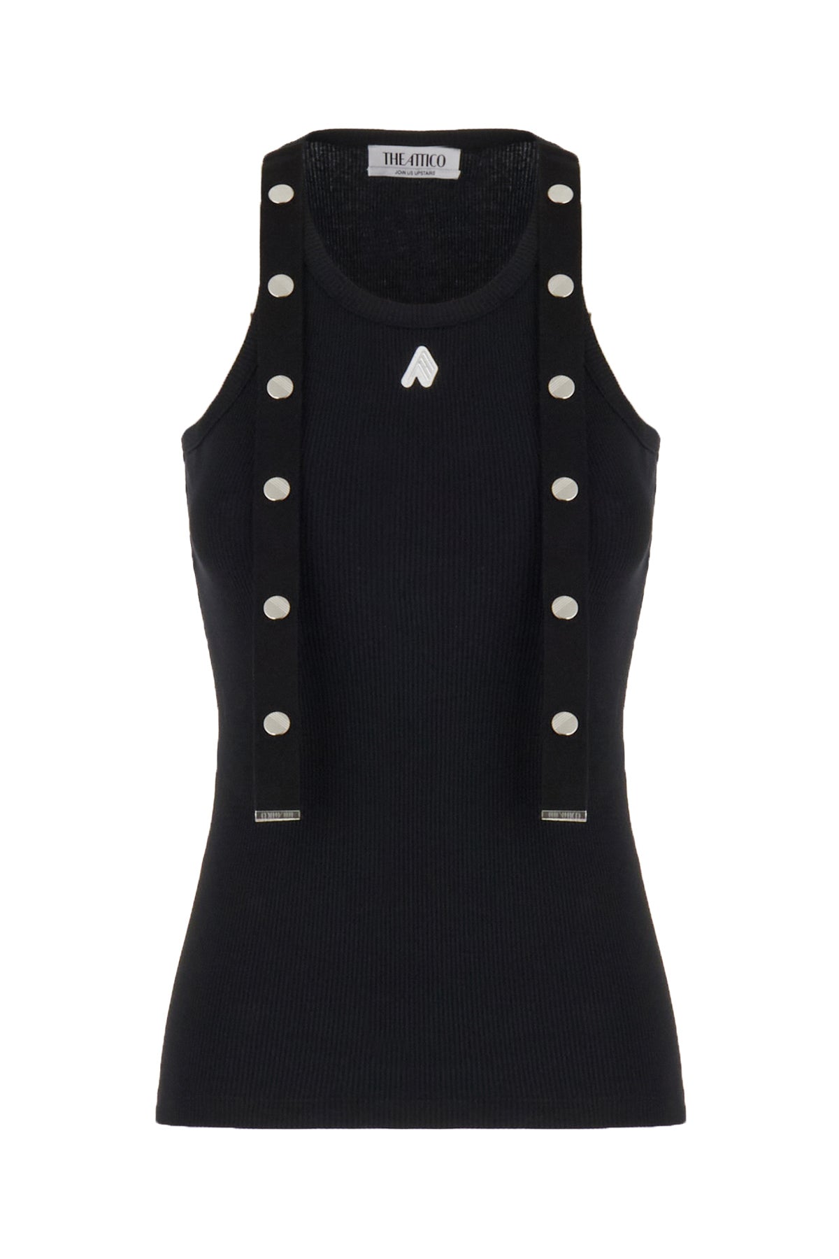 Top realized in ribbed pure cotton enriched by metal logoed patch on the chest and tonal fabric inserts with metal studs at the shoulders.