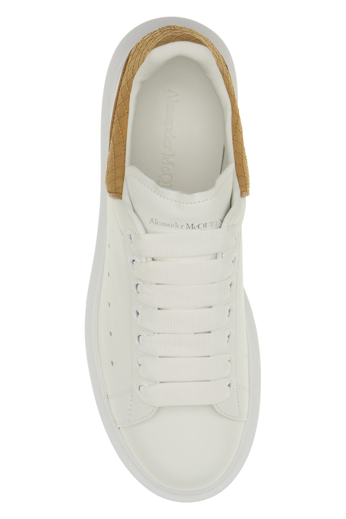 Sneakers in pelle bianca con tallone in tessuto beige
