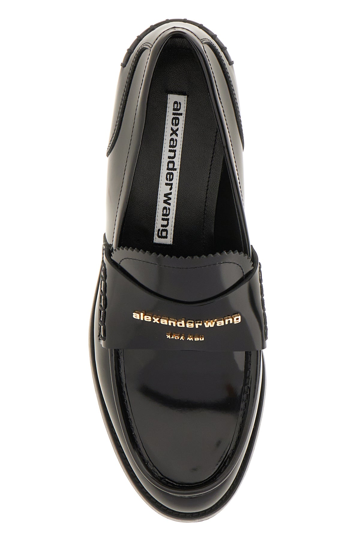 Loafers realized in polished finish leather enriched by metal lettering logo on the vamp.