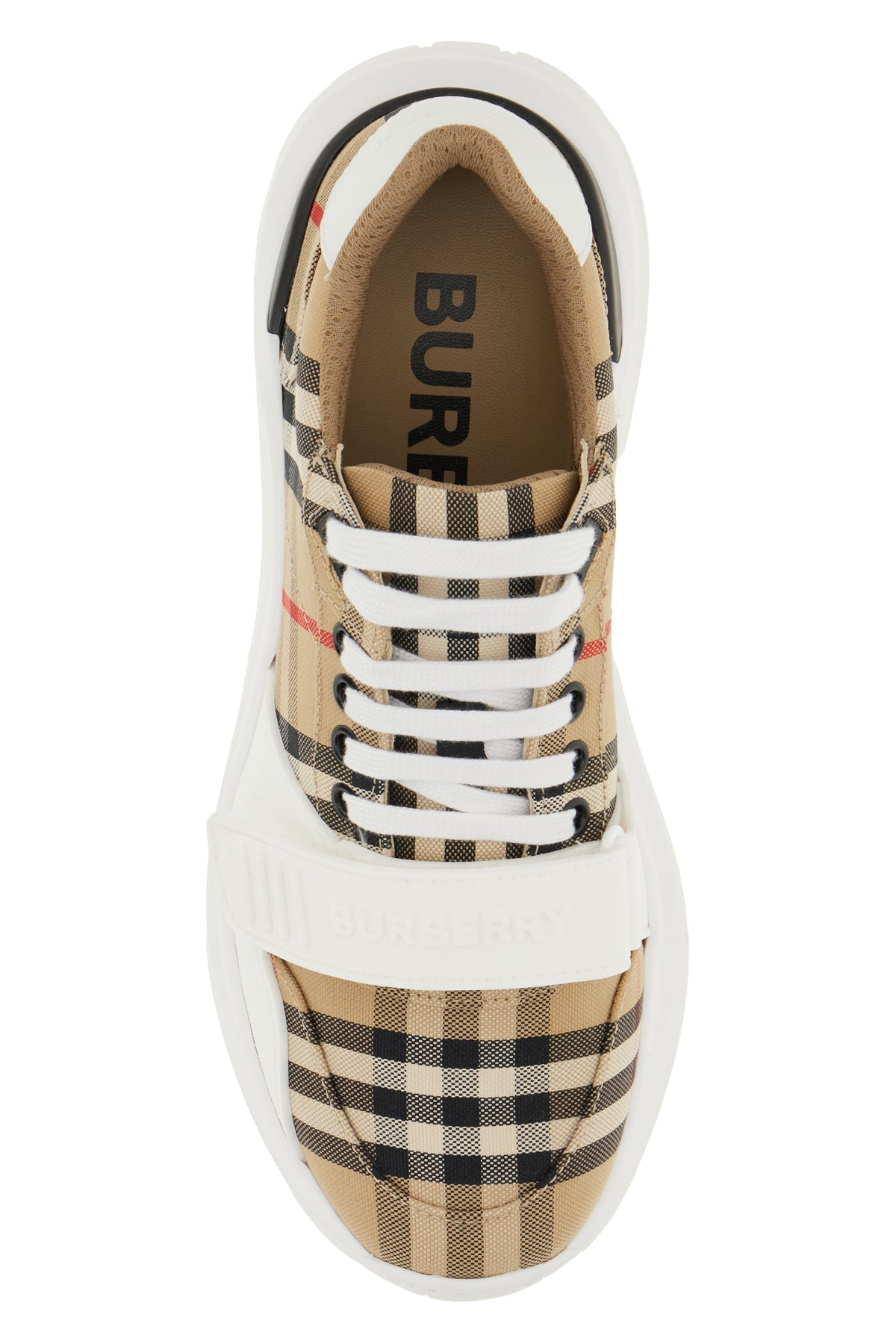 Sneakers realized in leather and Burberry Check fabric with rubber inserts characterized by embossed logo on the heel.