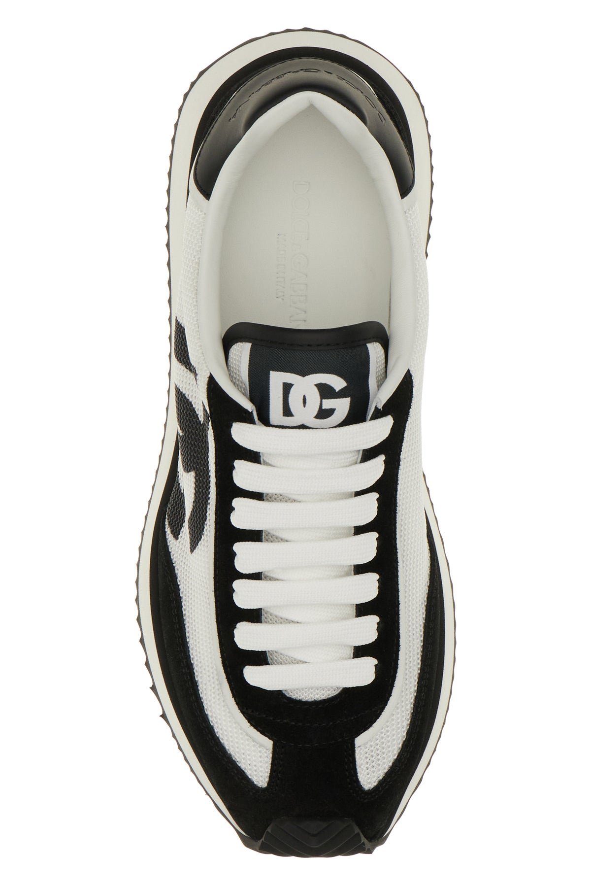 Sneakers realized in mesh and split calf leather characterized by contrasting printed DG logo on the side and embossed logo on the heel enriched by contrasting logoed label on the padded tongue.