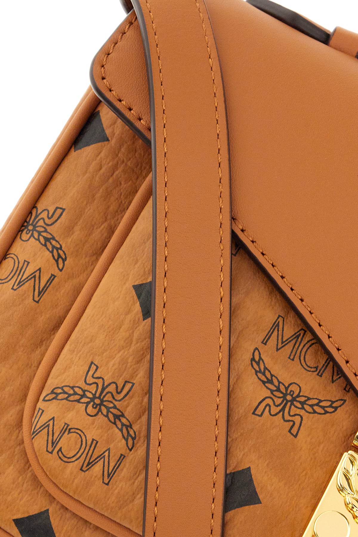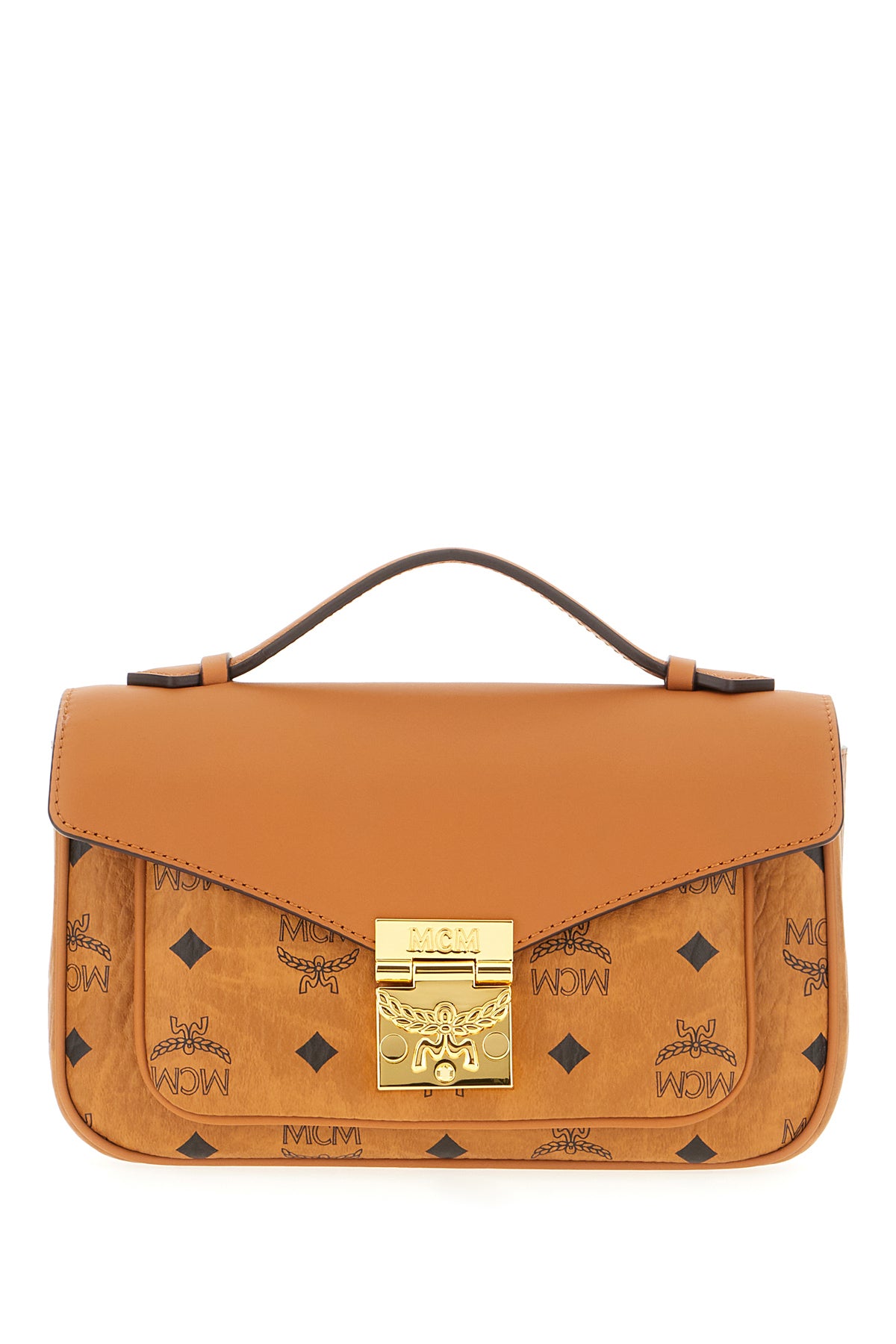 Handbag realized in coated pebble synthetic leather characterized by Visetos print on the entire surface.