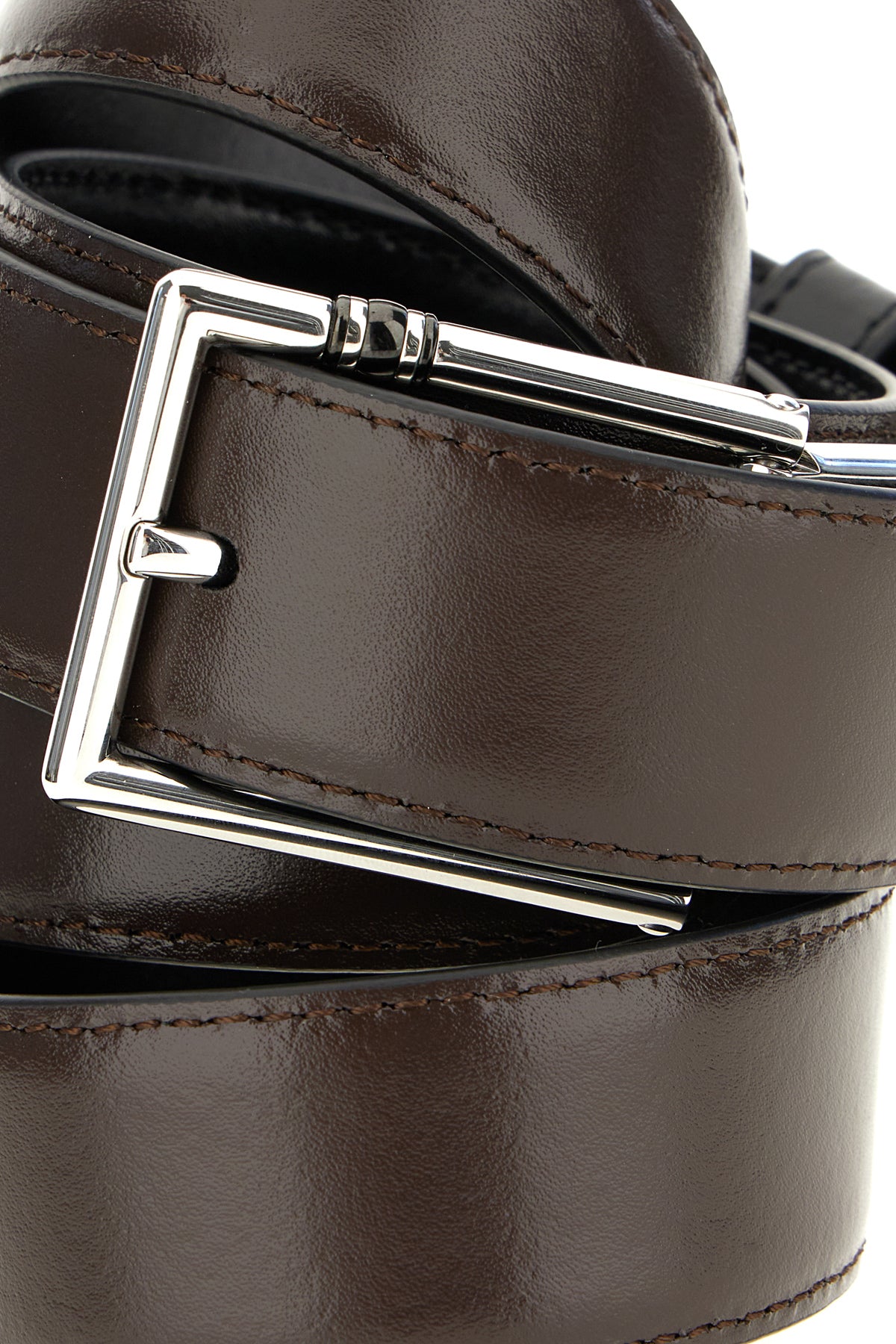 Black leather reversible belt