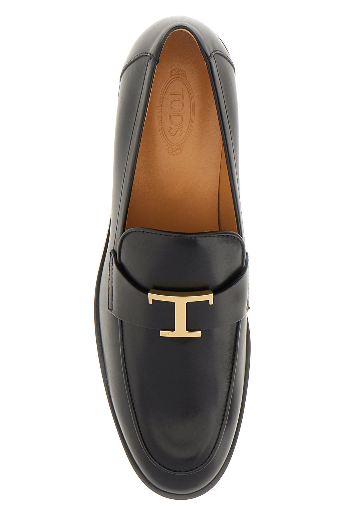 Loafers realized in smooth calf leather enriched by metal logoed detail on the vamp.
