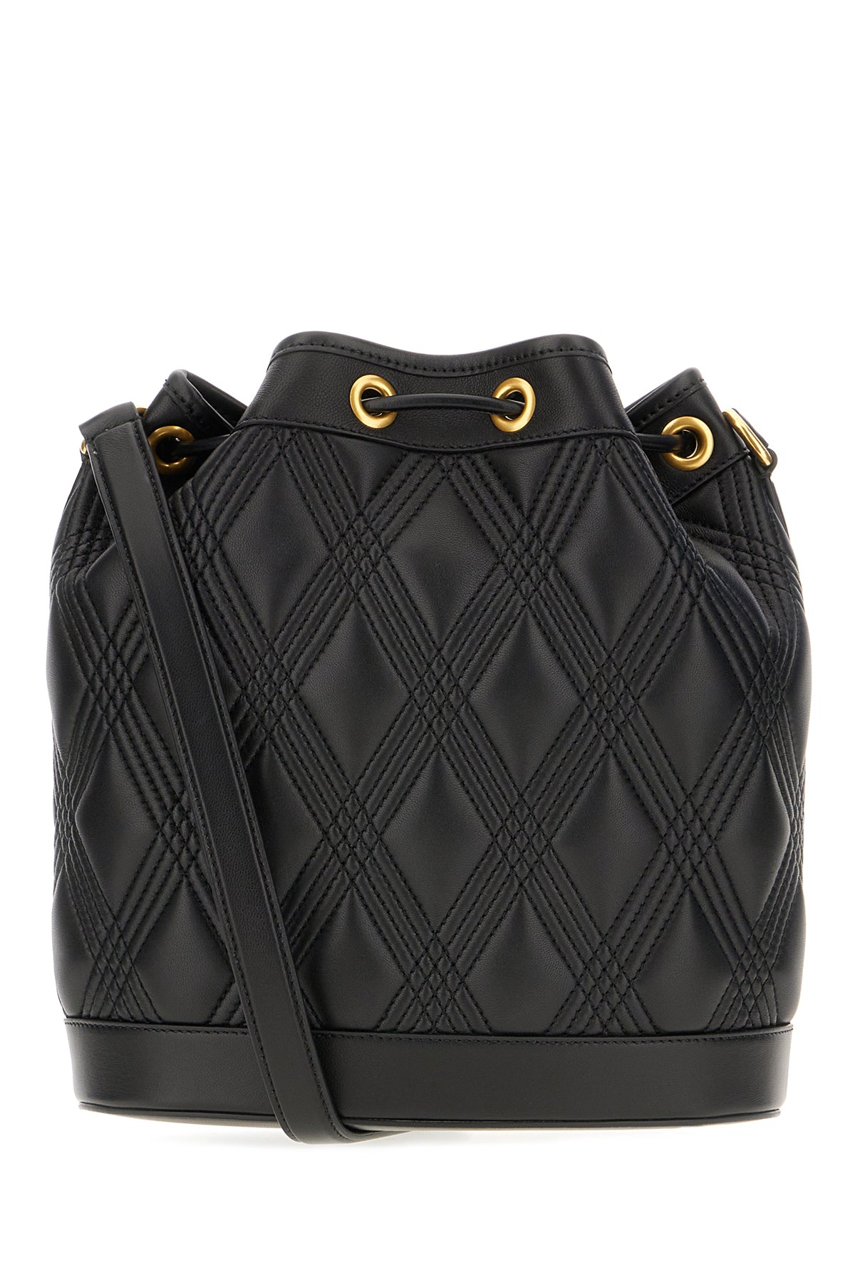 Crossbody bag realized in quilted leather enriched by metal Vlogo detail at the front.