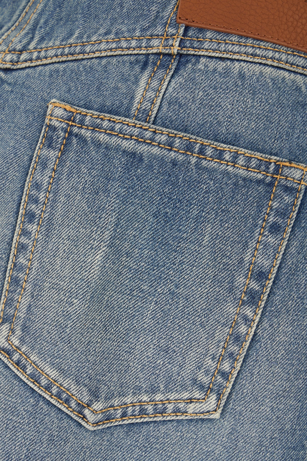 Gonna midi realizzata in denim di puro cotone slavato arricchita da etichetta logata in pelle a contrasto sul retro.
