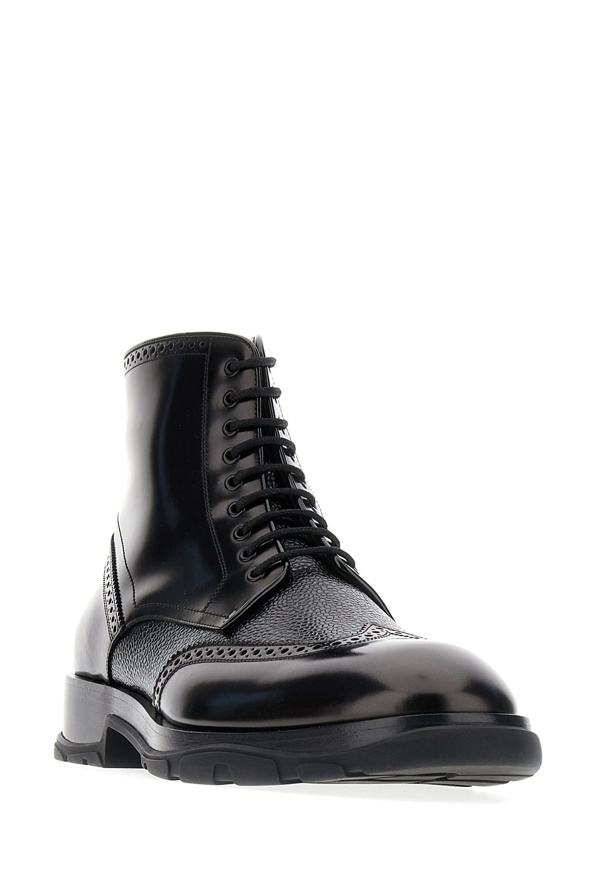 Stivaletti realizzati in pelle di vitello con inserti in pelle di vitello martellata tonale caratterizzati da full-brogue.