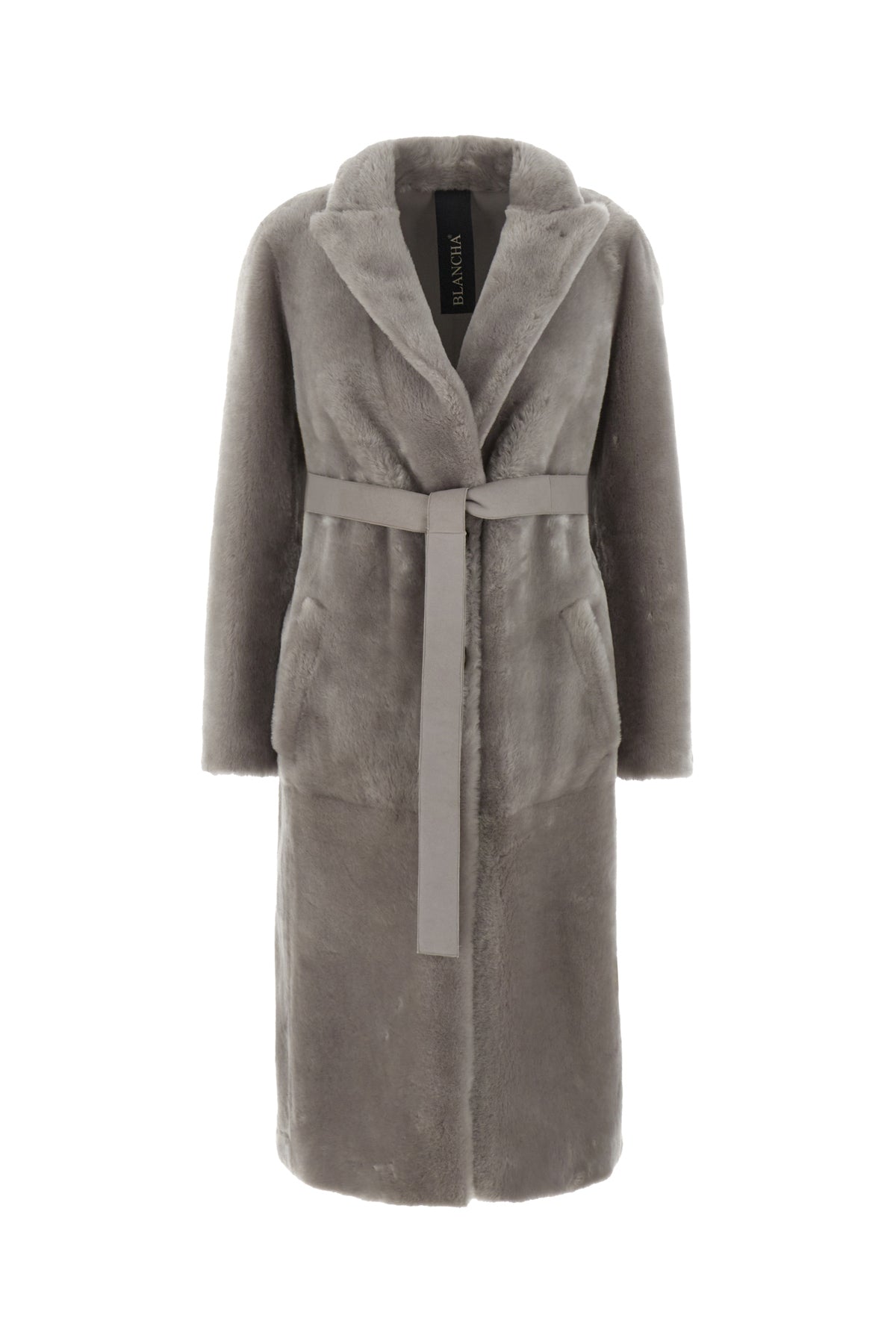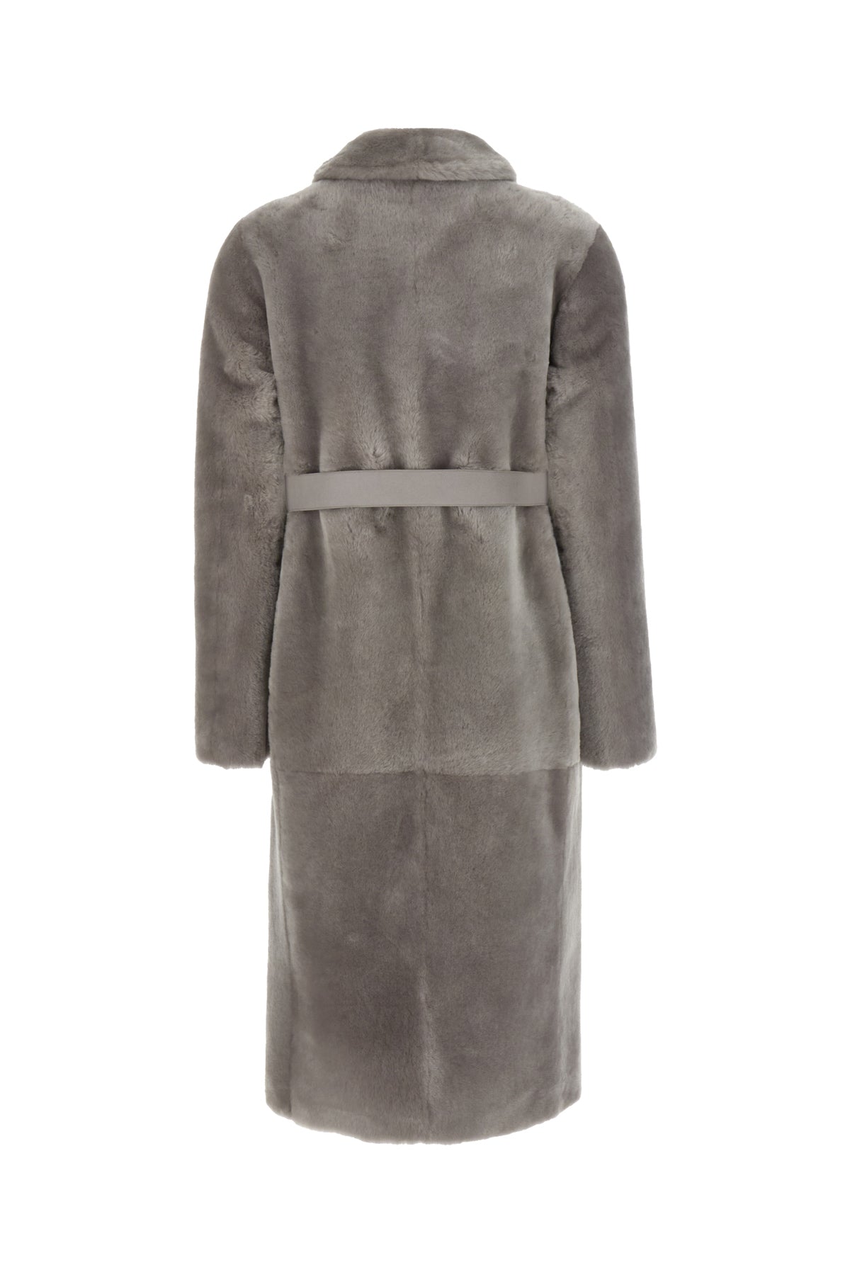 Cappotto reversibile realizzato in montone caratterizzato da chiusura mediante bottoni e cintura amovibile da annodare in vita in tessuto tonale.