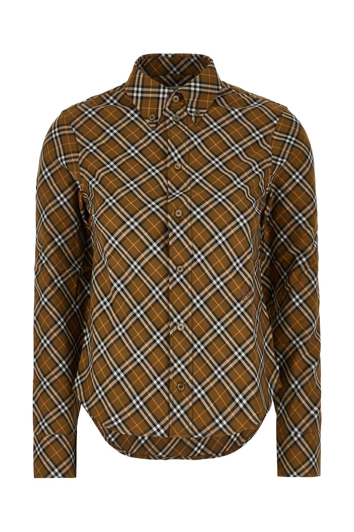 Camicia realizzata in puro cotone caratterizzata da stampa Burberry Check su tutta la superficie e ricamo TB sulla parte frontale.