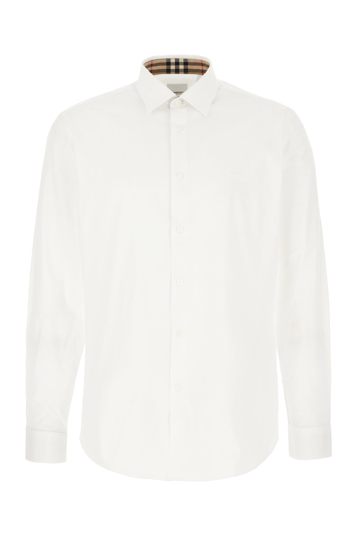 Camicia realizzata in cotone stretch caratterizzata da ricamo Equestrian Knight Design tonale sul petto.