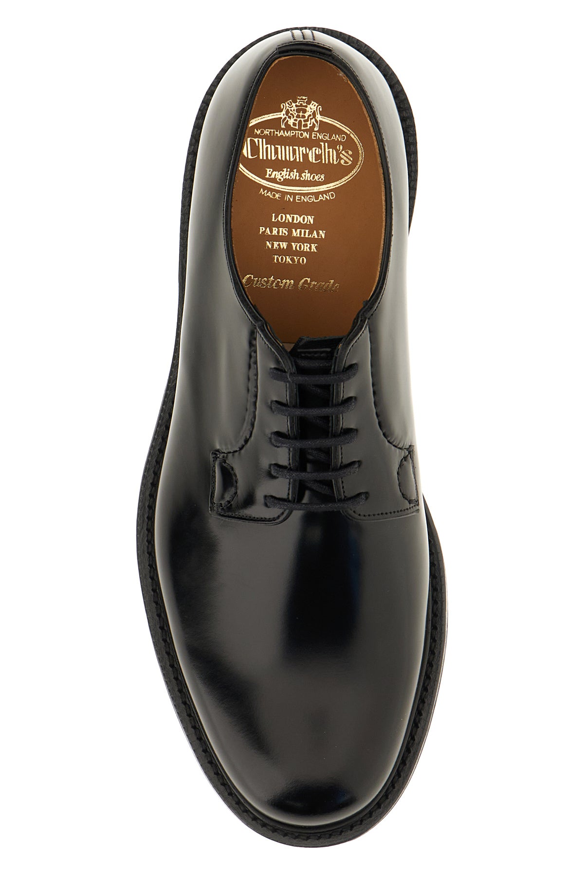 Scarpe stringate realizzate in pelle dal finish lucido caratterizzate da chiusura derby mediante lacci tonali cerati.