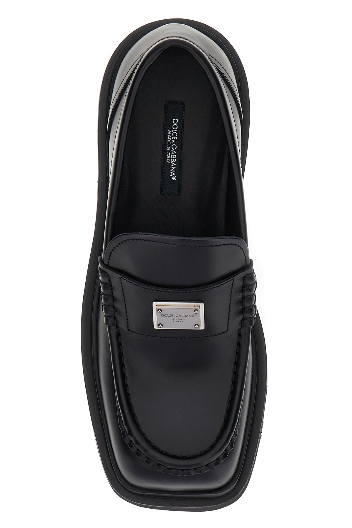 Mocassini realizzati in pelle di vitello liscia arricchiti da targhetta logata sulla mascherina in pelle tonale.