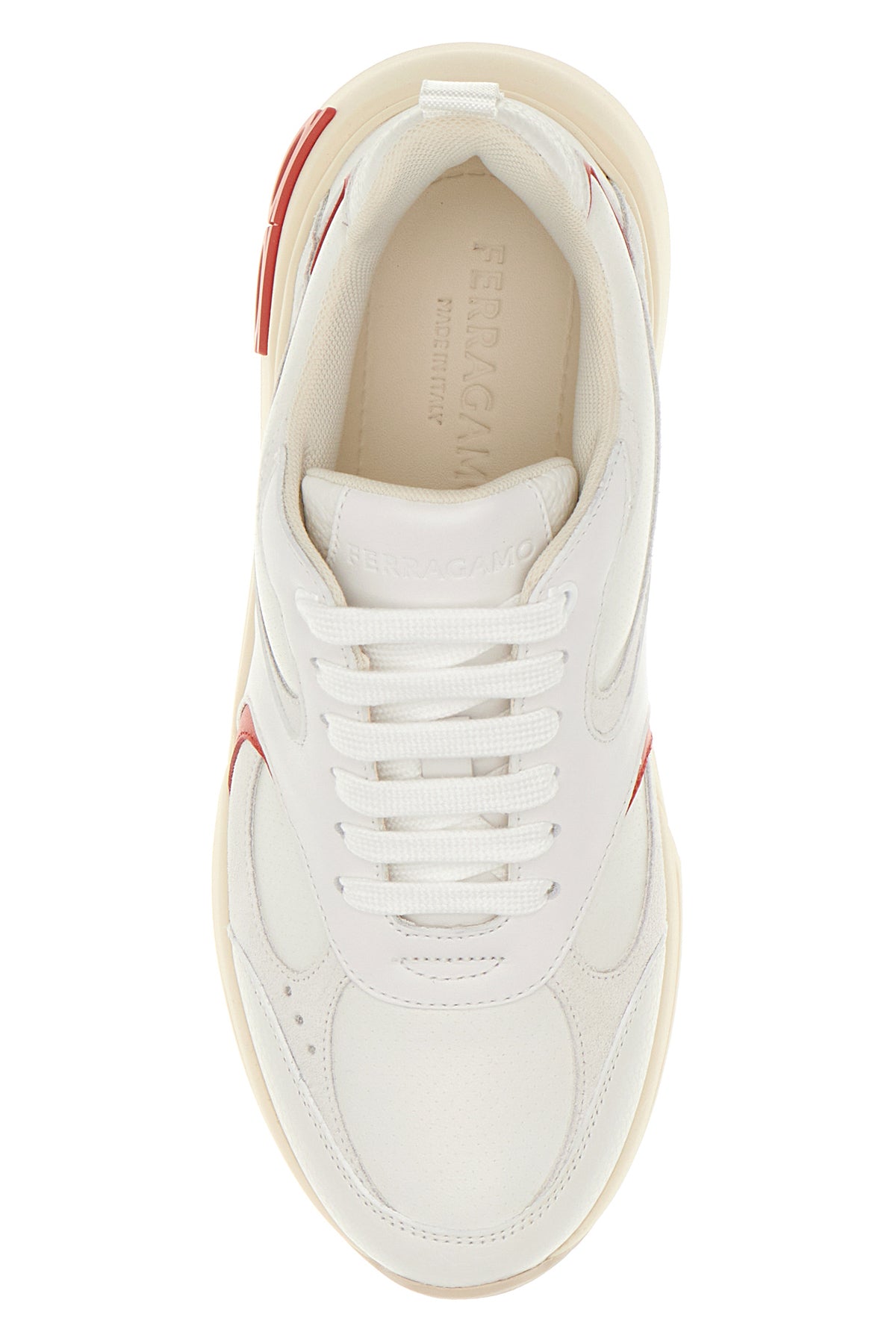 Sneakers realizzate in nappa d'agnello e pelle scamosciata con inserti in pelle di vitello a contrasto arricchite da dettaglio Gancini a contrasto sul lato.